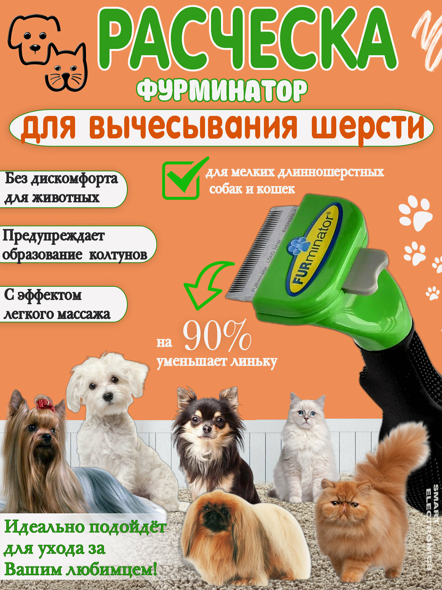 Фурминатор, для удаления подшерстка, расческа для длинношерстных кошек и собак малых пород; микс цветов интересное: