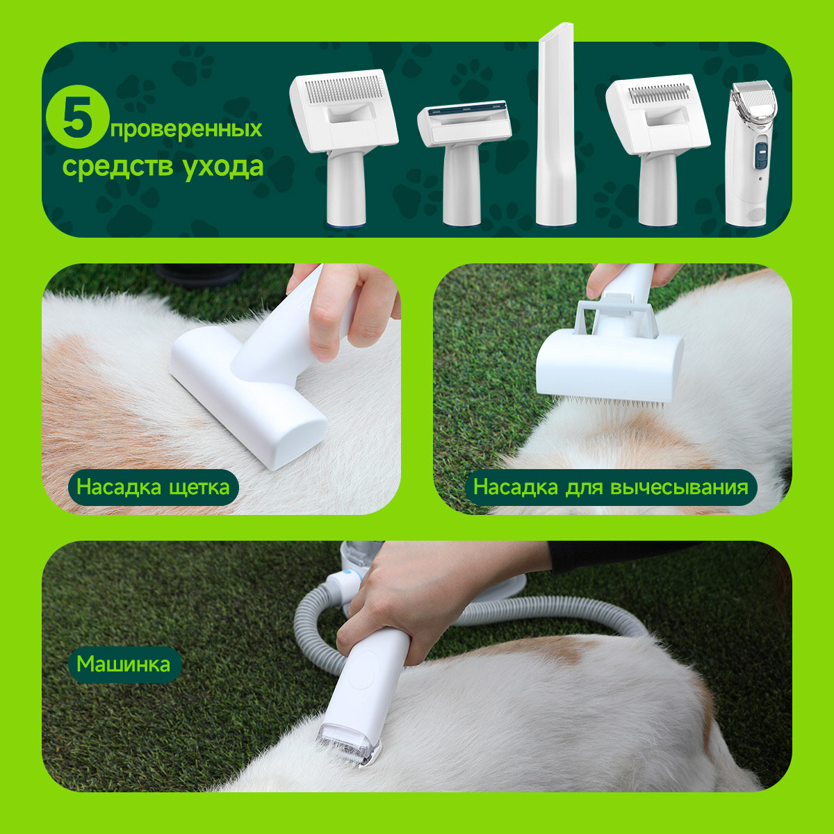 Купить 5 в 1 груминг-пылесос KaringBee P1, машинка триммер для стрижки животных собак и кошек, щетка, дешеддер, 4 направляющих гребня, насадки для уборки, вакуумный сбор шерсти
