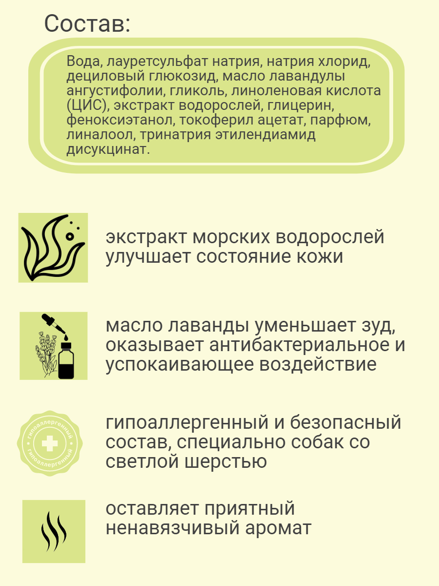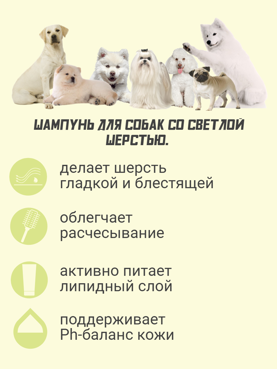 Шампунь для собак с белым и светлым окрасом шерсти 300мл интересное: