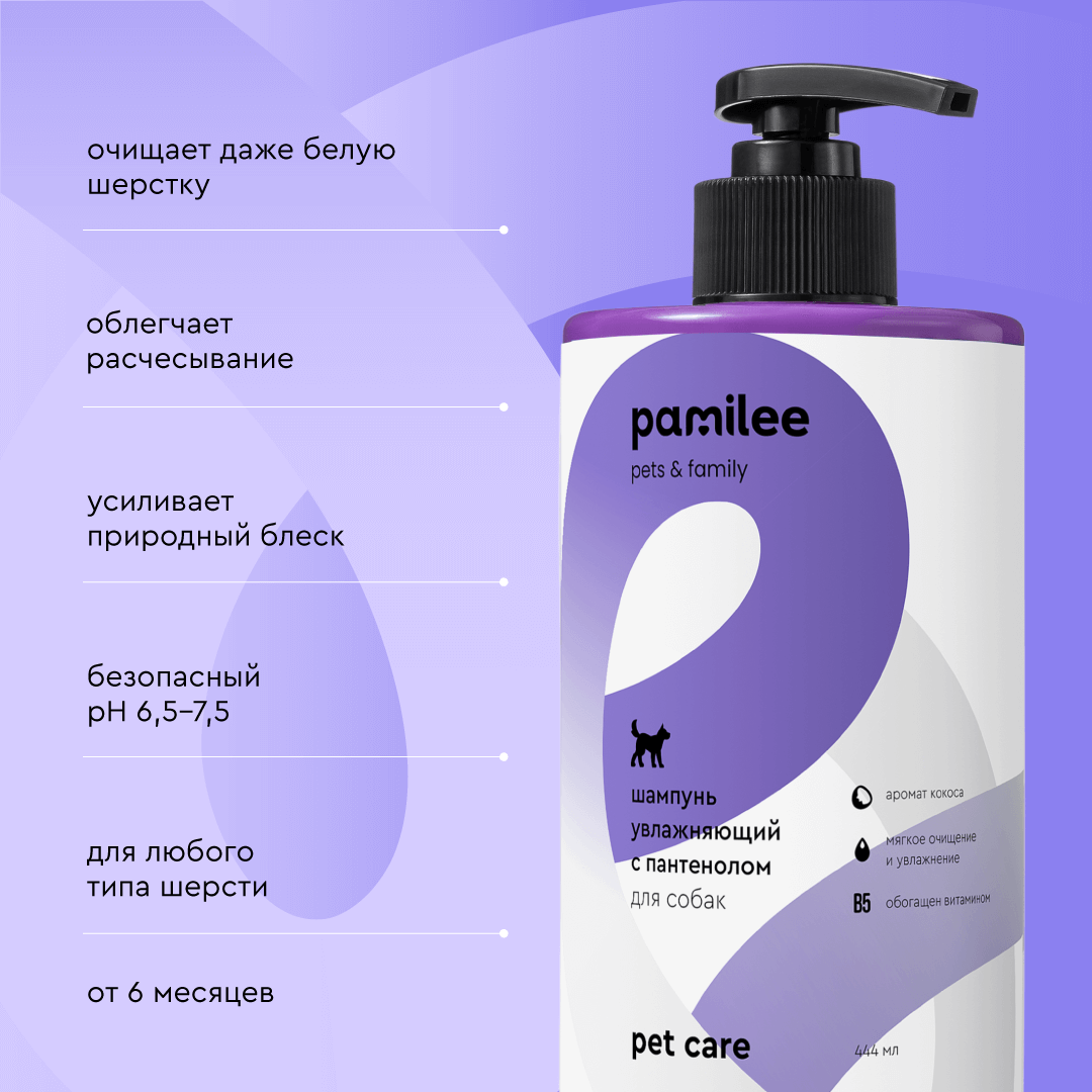 Купить Шампунь для собак Pamilee с ароматом кокоса, увлажняющий гипоаллергенный для всех типов шерсти, против сухости и зуда для домашнего ухода, 444 мл