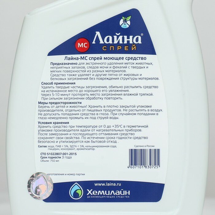 | Подробная комплектация | Универсальный спрей "Лайна-МС" от запаха и меток животных, лаванда, 750 мл |