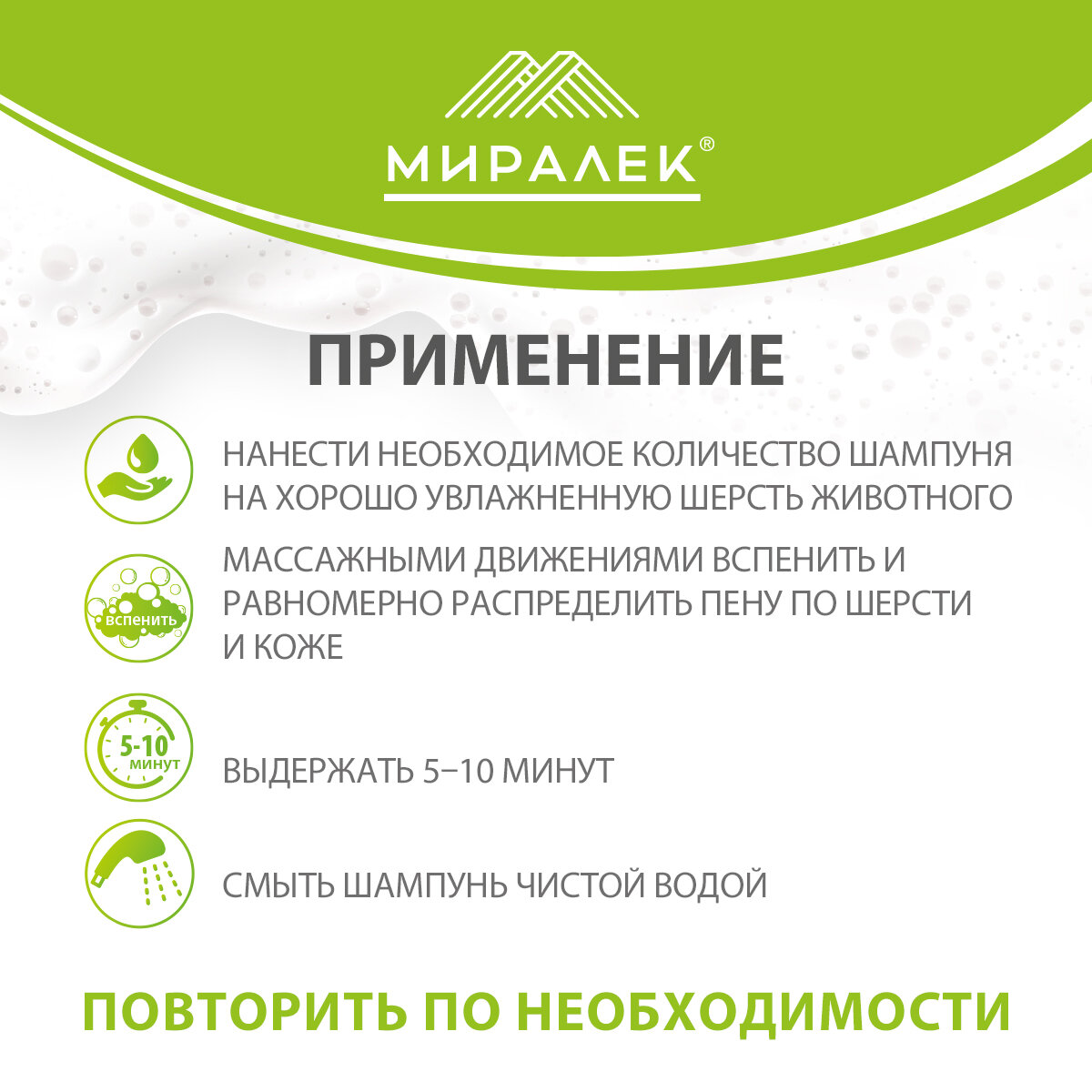 | Способ применения | «Шампунь Скинвет» наносят в небольшом количестве на предварительно хорошо увлажненную шерсть животного. Шампунь вспенить массажными движениями и равномерно распределить пену по шерсти и коже животного, выдержать около 5–10 минут и смыть чистой водой. При необходимости процедуру повторить. После проведения процедуры шерсть животного высушить и расчесать. Особо эффективен при применении с «Муссом Скинвет». |
