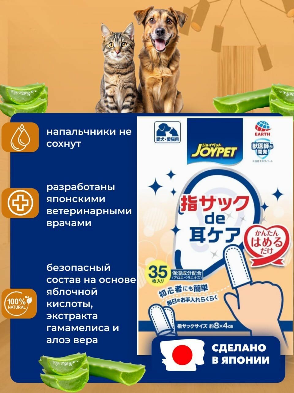 Купить Анатомическая влажная салфетка-напальчник Japan Premium Pet для ухода за ушами и профилактики отита у собак и кошек, 35 шт.