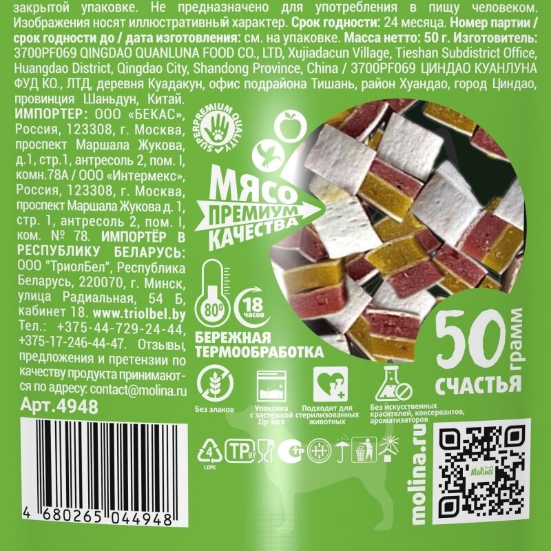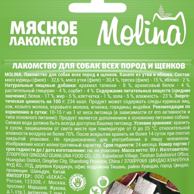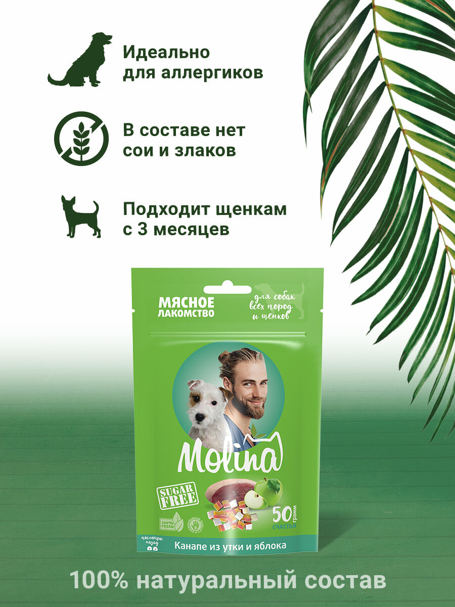 Молина Лакомство для собак всех пород и щенков Канапе из утки и яблока, 50г интересное: