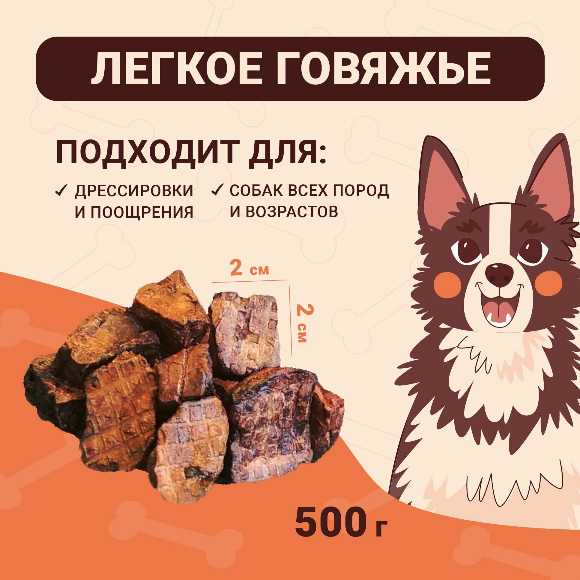 Легкое говяжье 500г Сушеное натуральное лакомство для дрессировки и поощрения собак интересное: