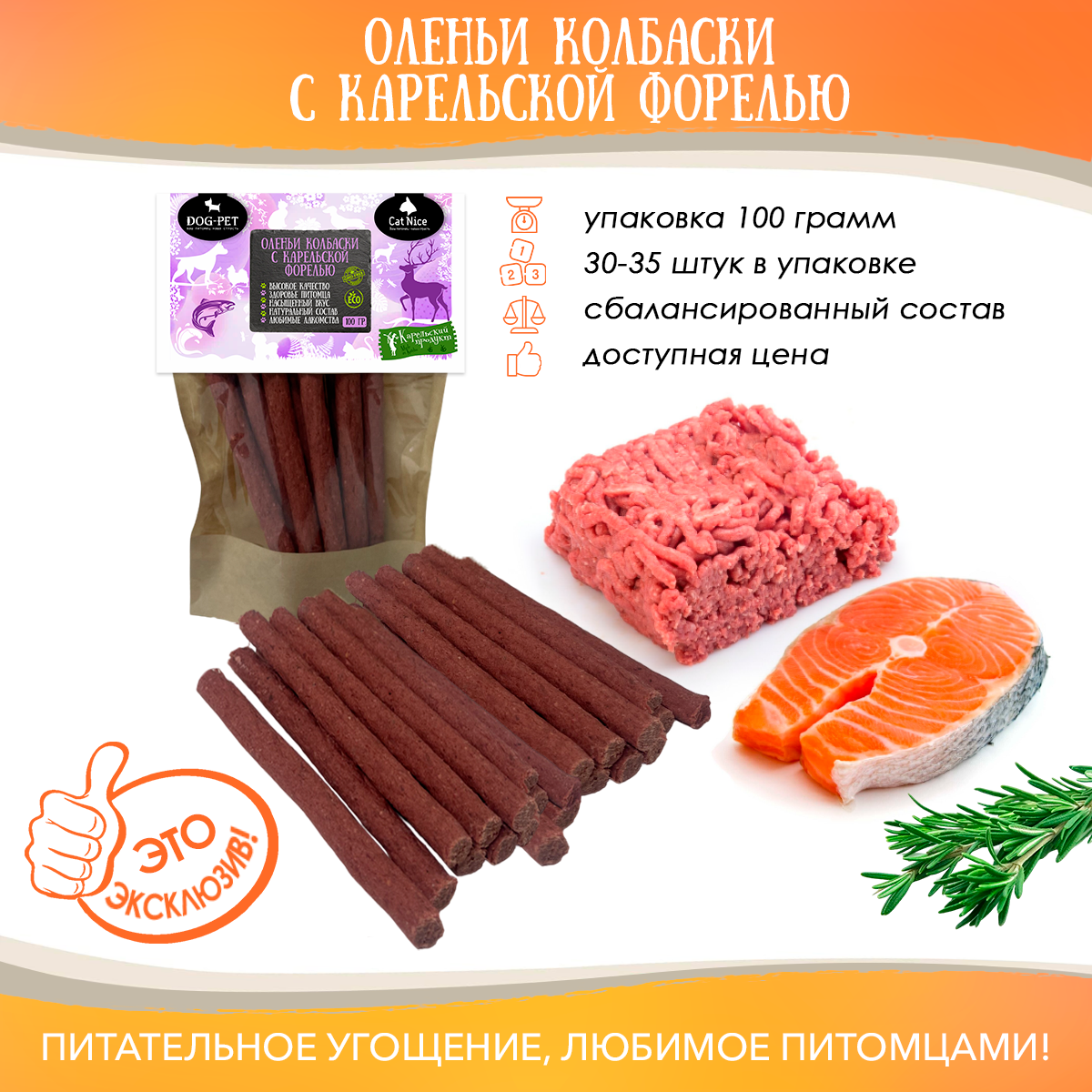 Купить Лакомства Dog-Pet Оленьи колбаски с Карельской форелью для собак и кошек всех пород