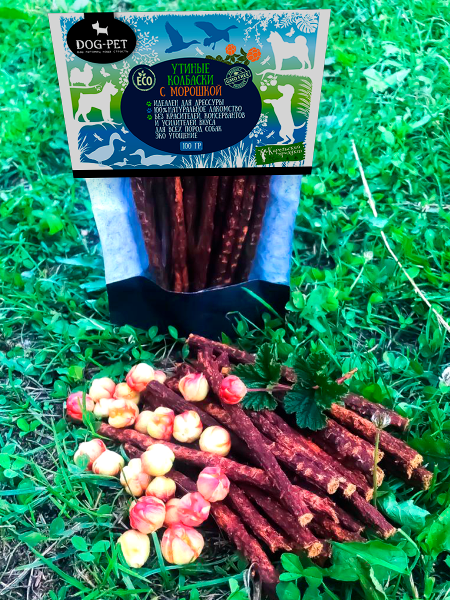 Купить Лакомства Dog-Pet Колбаски из утки с тертыми ягодами морошки для всех пород собак.