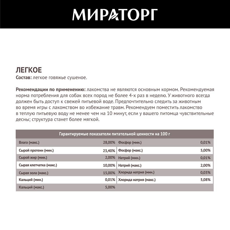 Мираторг Лакомство для собак лёгкое говяжье 1010016739 0,05 кг 59578
