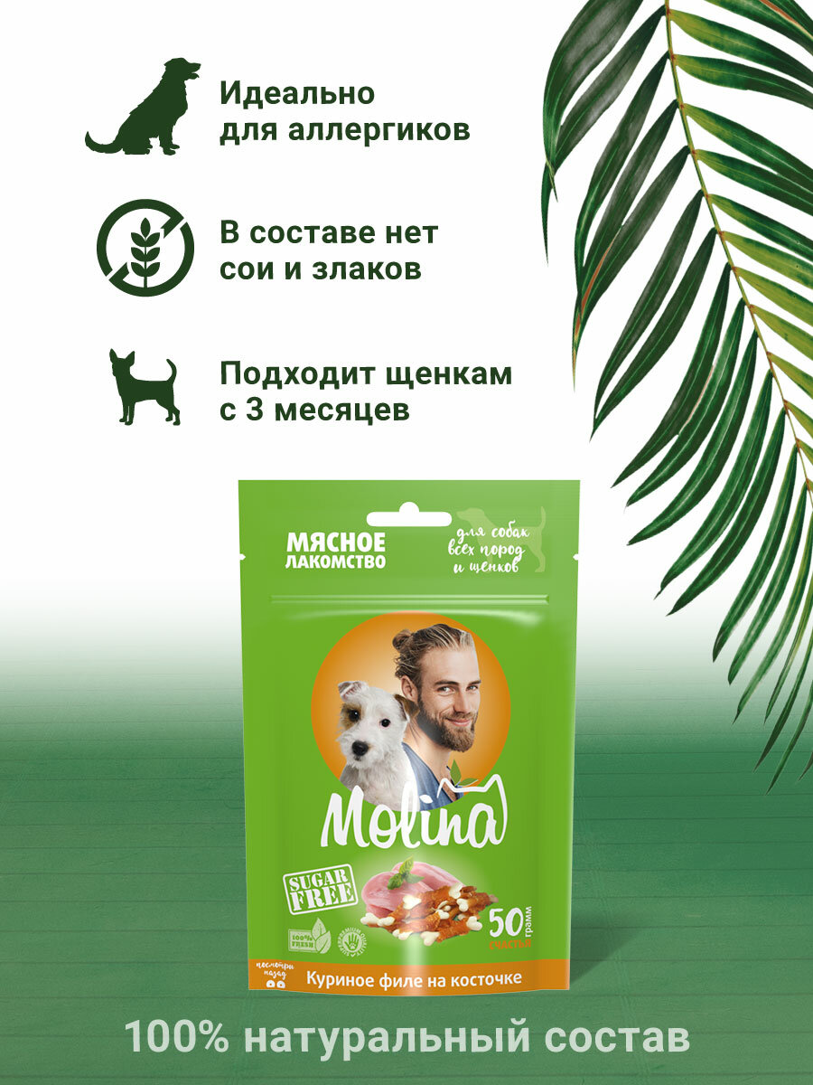 Molina Лакомство для собак всех пород и щенков Куриное филе на косточке 4962 0,05 кг 60805 интересное: