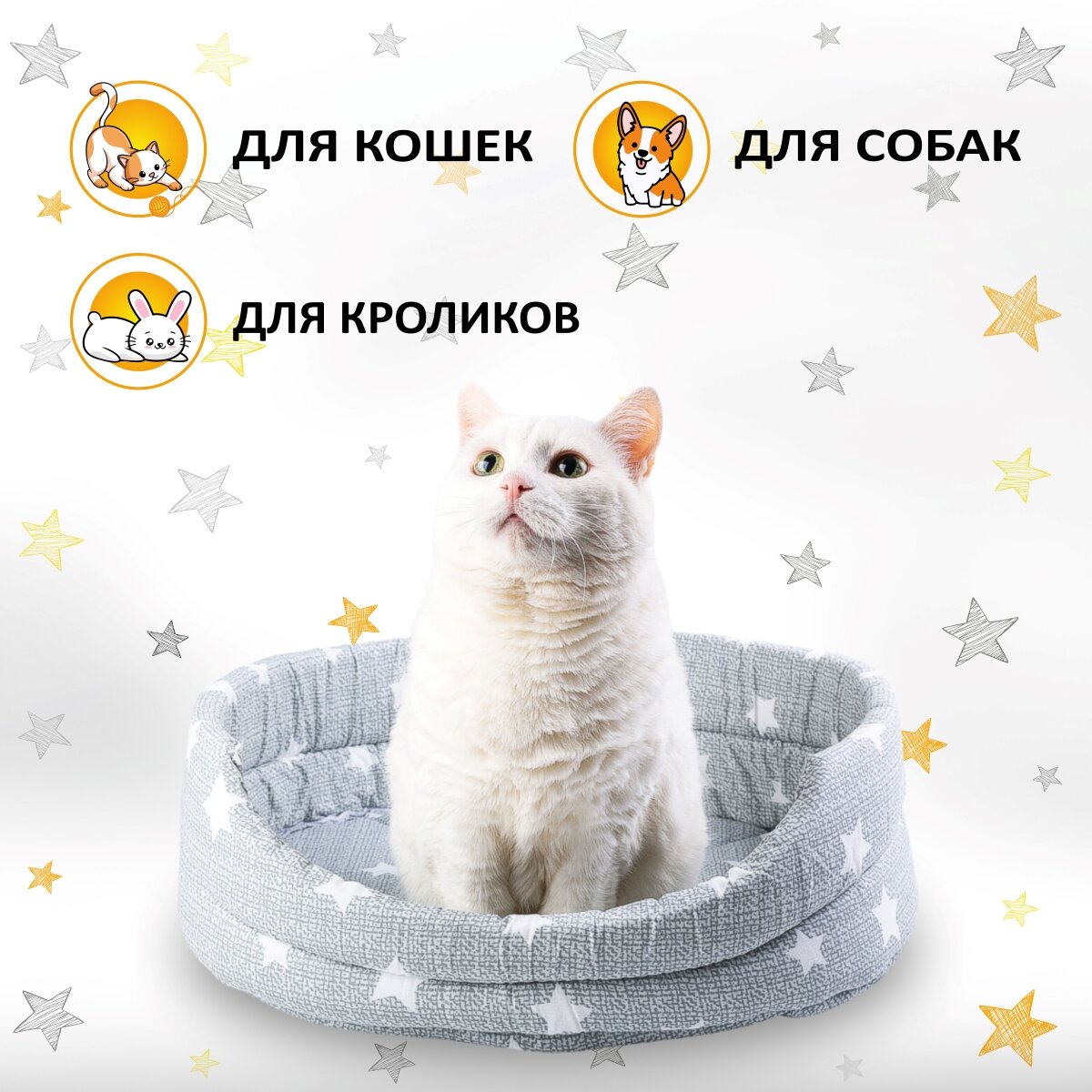 Лежанка с бортиком для животных Petmil "Релакс" 50х40 см Серая с белыми звездами интересное: