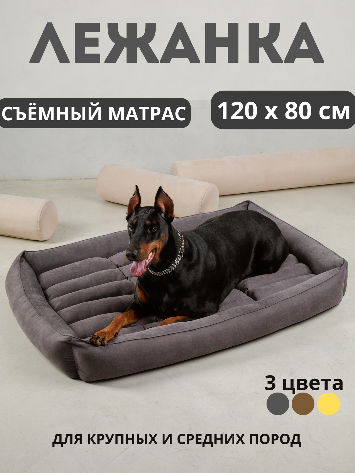 Лежанка для больших и крупных пород собак 105*80 см со съемной подушкой