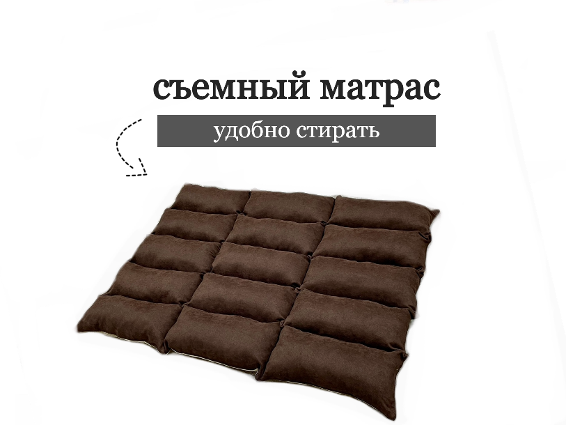 Большой мягкий лежак для больших собак со съёмной подушкой коричневый 90*70 см