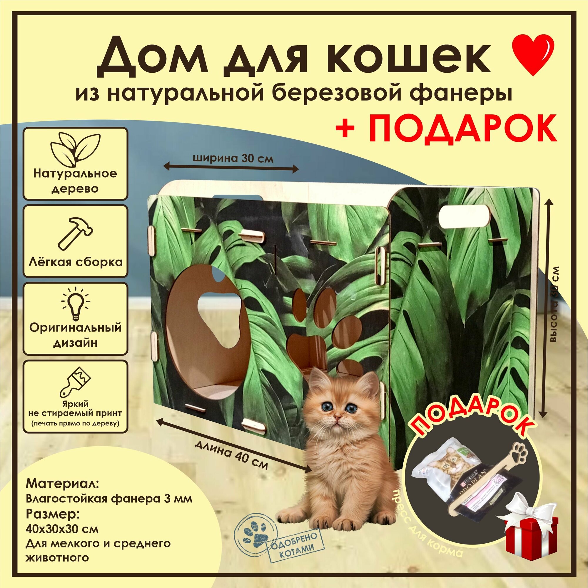 Домик для кошек Мини / Деревянный домик для кота. / Лежанка для кошки из фанеры / Домик для животных из дерева
