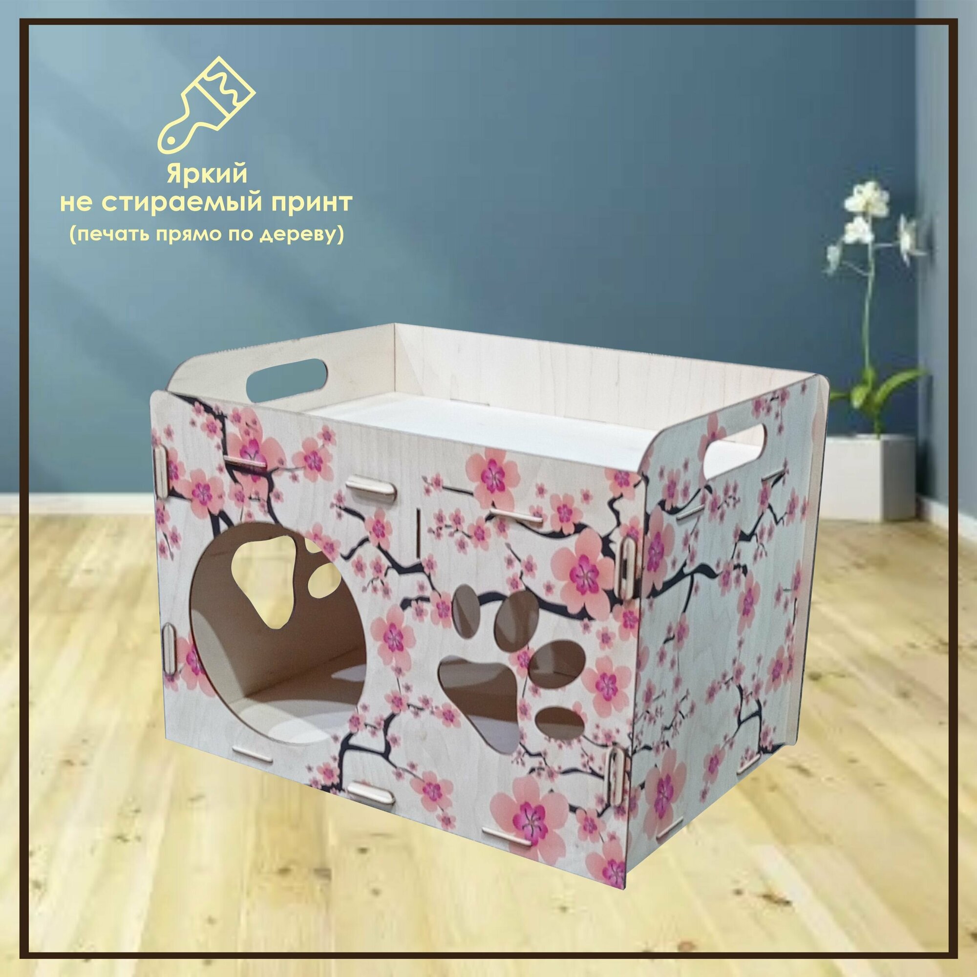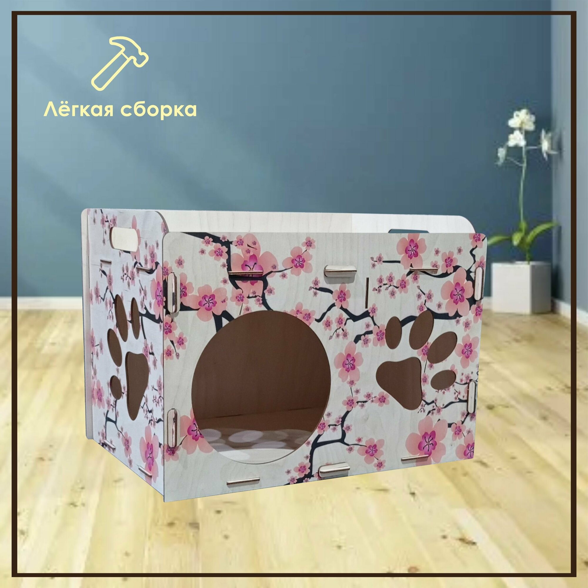 Деревянный домик для кота / Лежак для кошек / Лежанка для кошки из фанеры / Домик для животных из дерева
