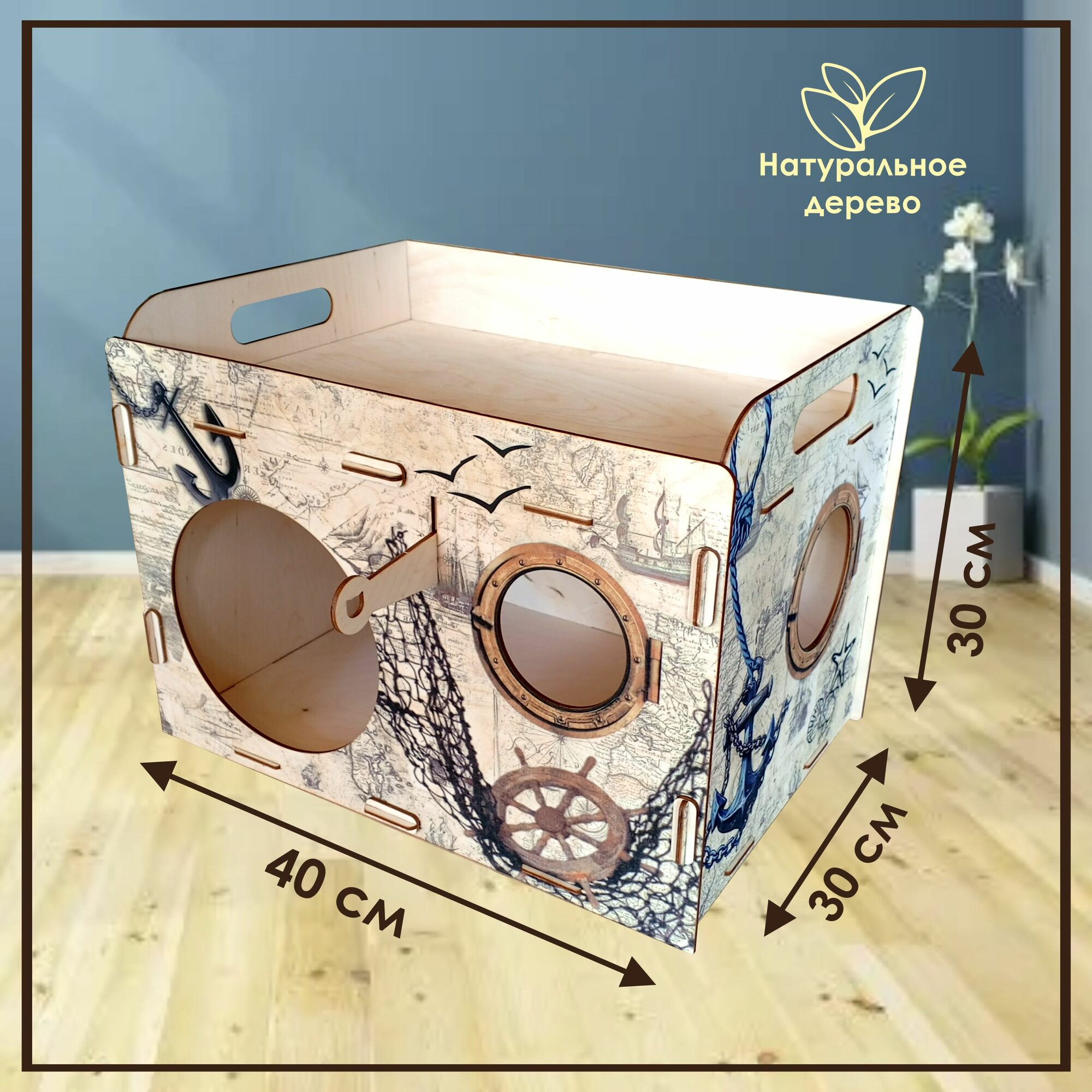 Деревянный домик для кота / Лежак для кошек / Лежанка для кошки из фанеры / Домик для животных из дерева