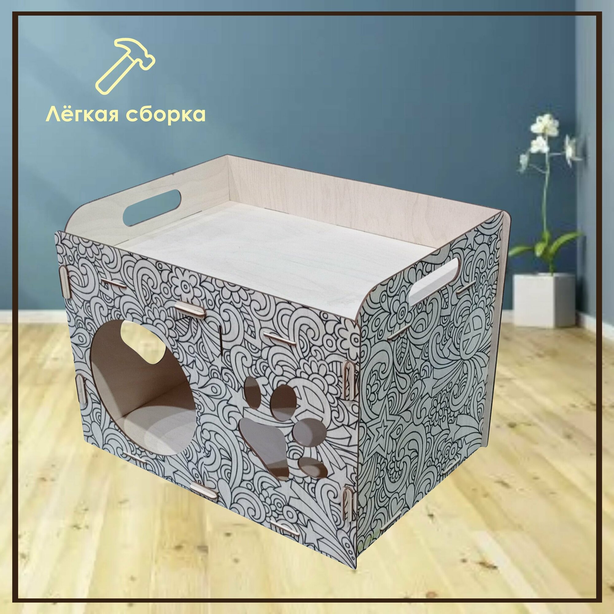 Деревянный домик для кота / Лежак для кошек / Лежанка для кошки из фанеры / Домик для животных из дерева