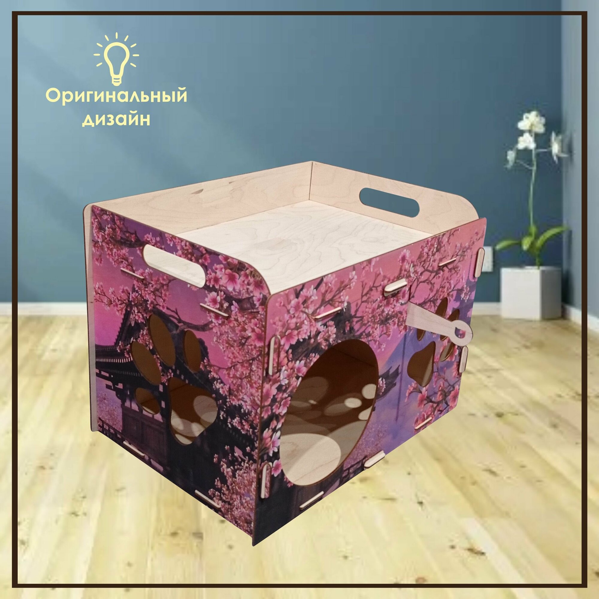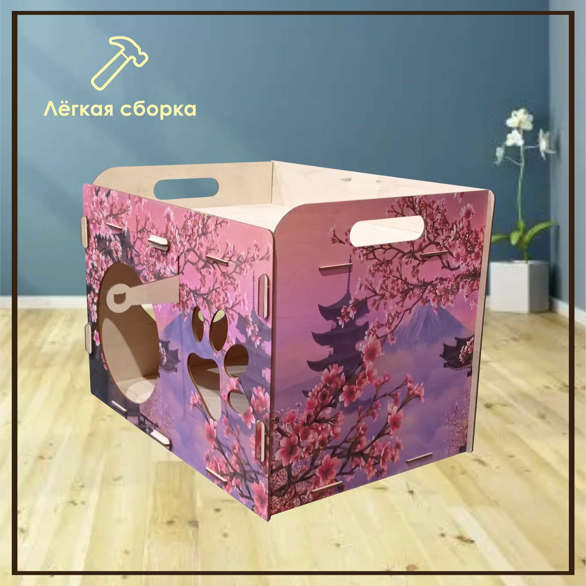 Деревянный домик для кота / Лежак для кошек / Лежанка для кошки из фанеры / Домик для животных из дерева