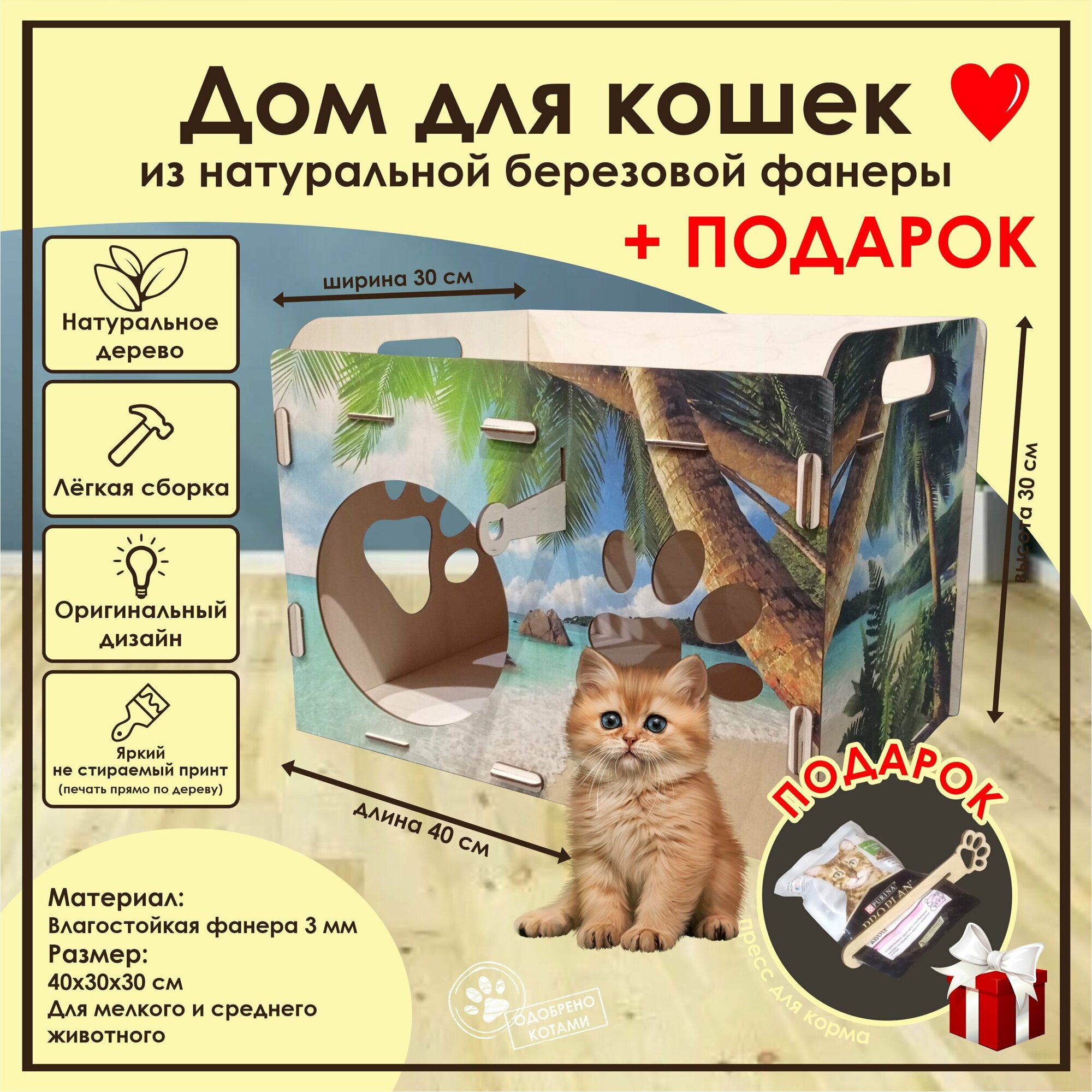 Купить Домик для кошек Мини / Деревянный домик для кота / Лежак для кошек / Лежанка для кошки из фанеры / Домик для животных из дерева