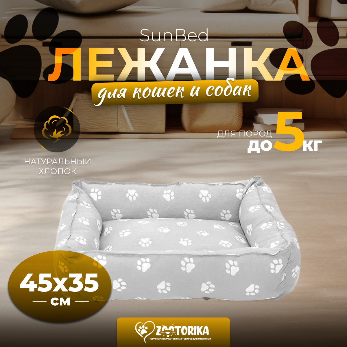 СохранитьЛежанка для кошек и собак SunBed прямоугольная "Лапки", серая, 45х35 / Лежак для животных мелких пород интересное: