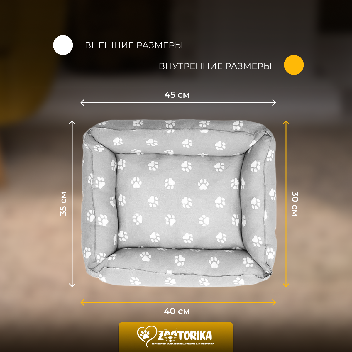 Купить Лежанка для кошек и собак SunBed прямоугольная "Лапки", серая, 45х35 / Лежак для животных мелких пород