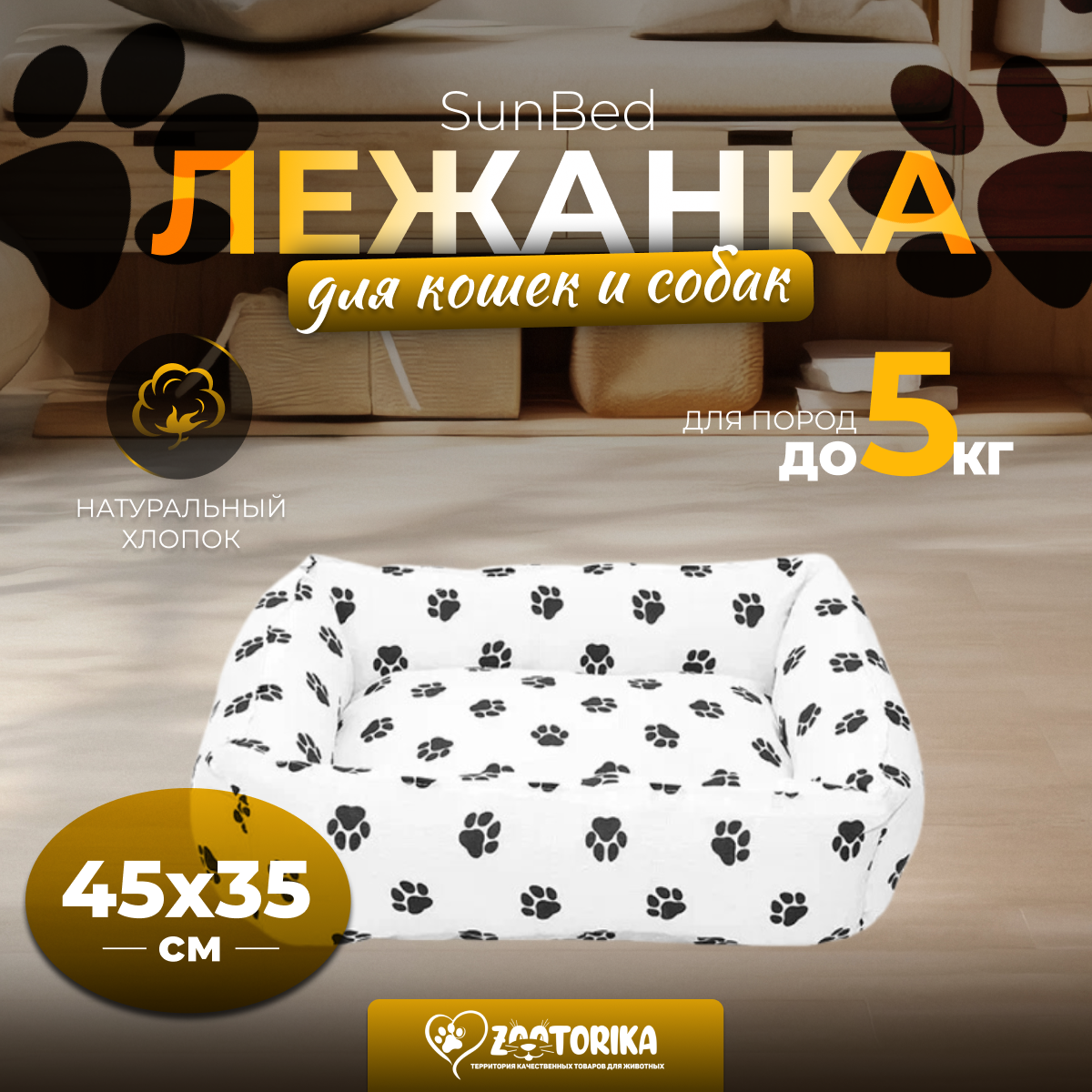 СохранитьЛежанка для кошек и собак SunBed прямоугольная "Лапки", белая, 45х35 / Лежак для животных мелких пород интересное: