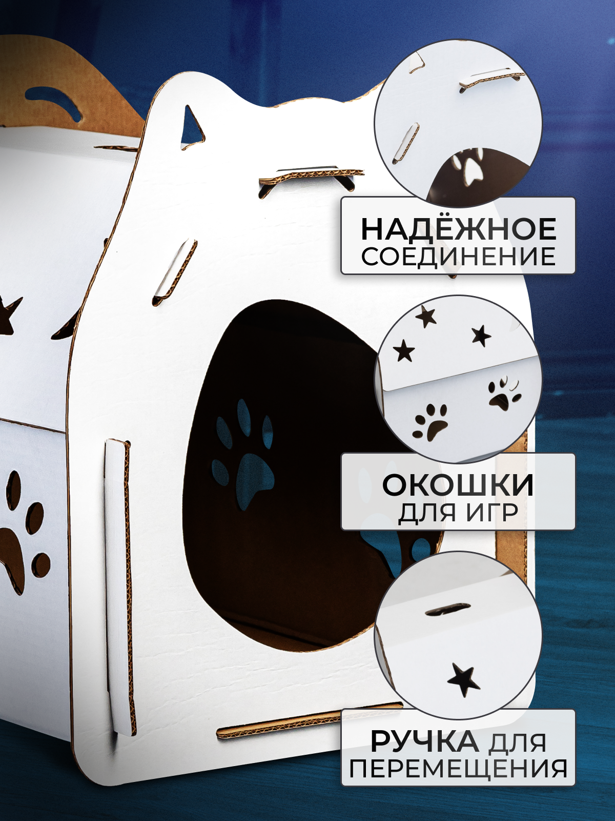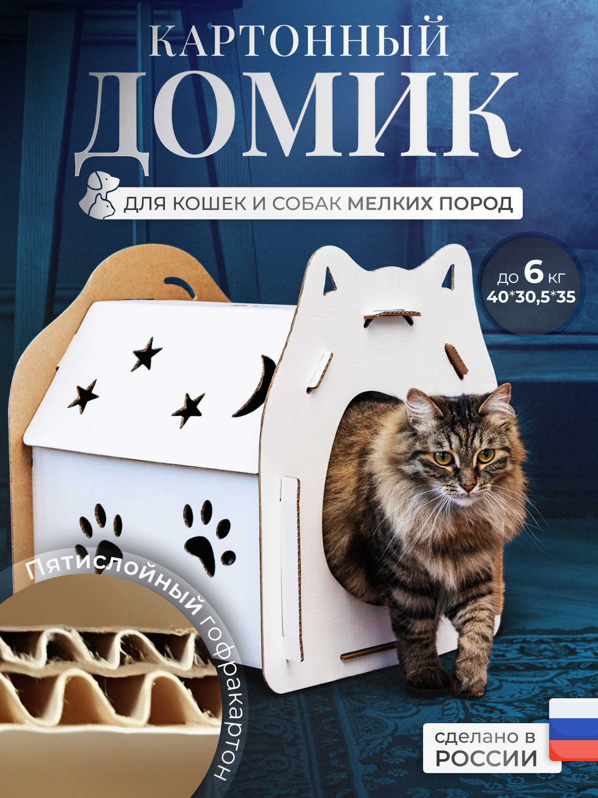 Домик из картона для кошки, дом-лежак для кота, домик для кошек,домик, дом для питомцев из картона большой