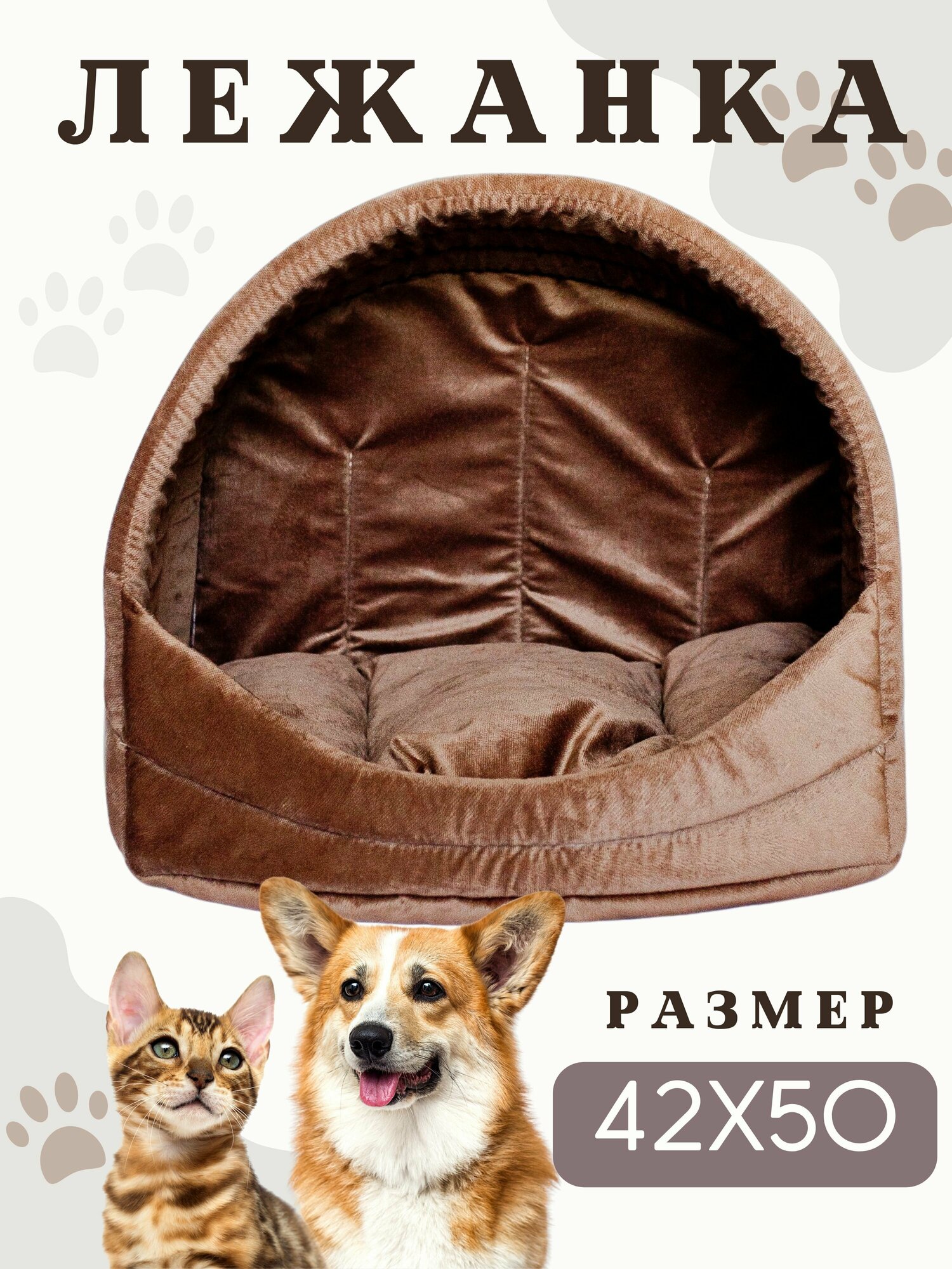 Купить Лежанка домик для кошек, для собак мелких и средних пород, лежак для животных, со съёмной подушкой, цвет: коричневый, 42x50 см