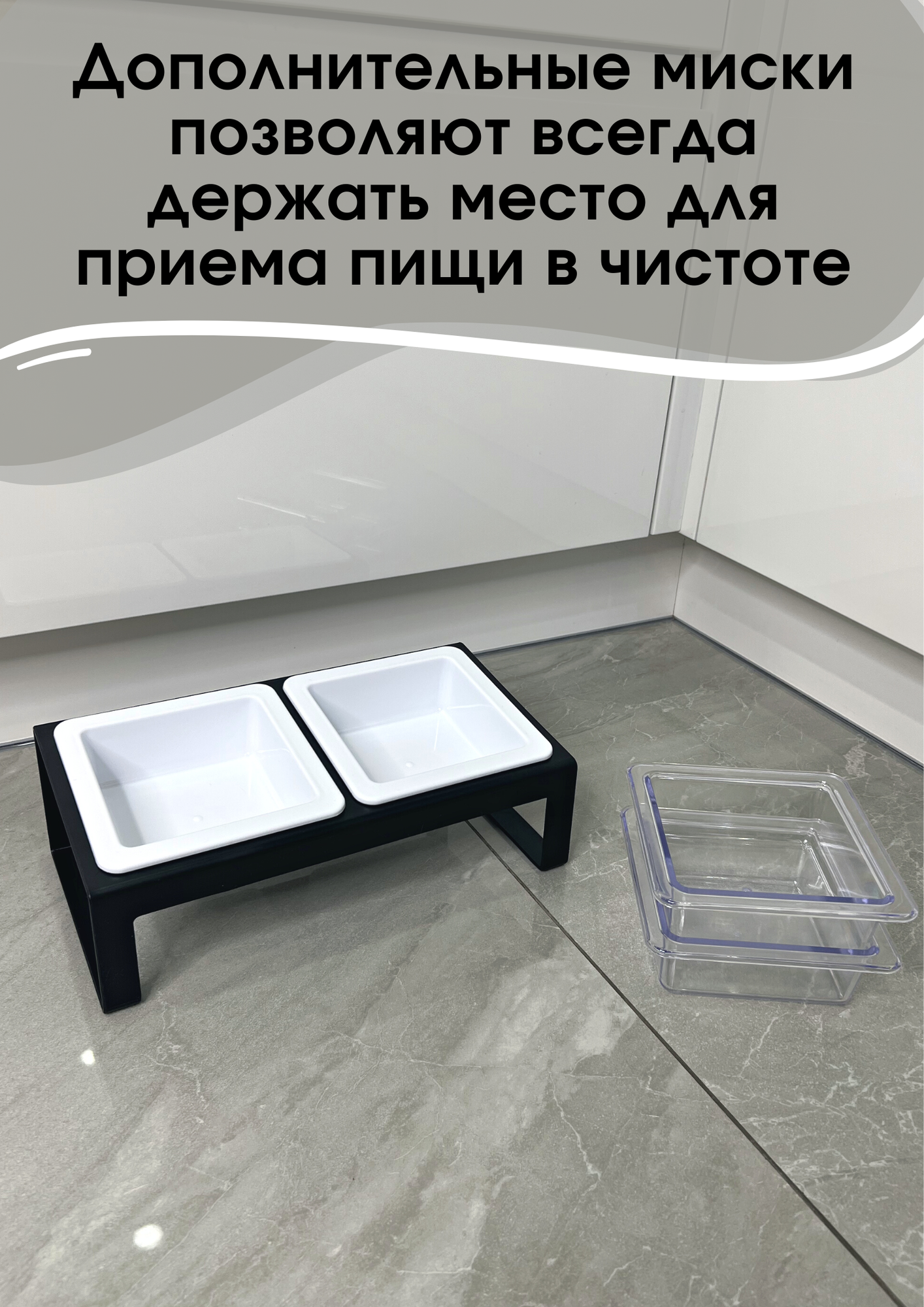 | Дополнительная информация | Миска, двойная, на подставке, с наклоном, сменные миски |