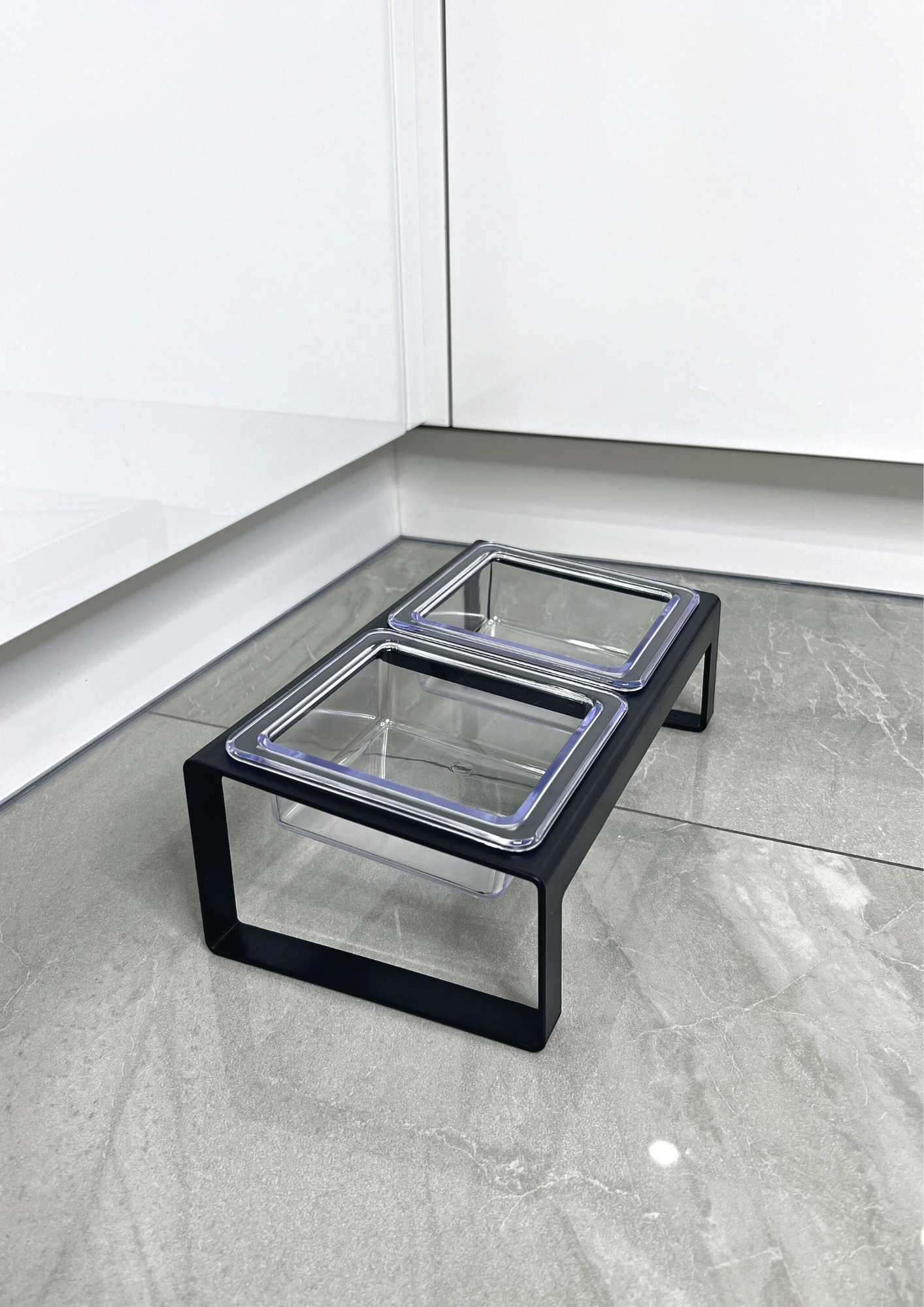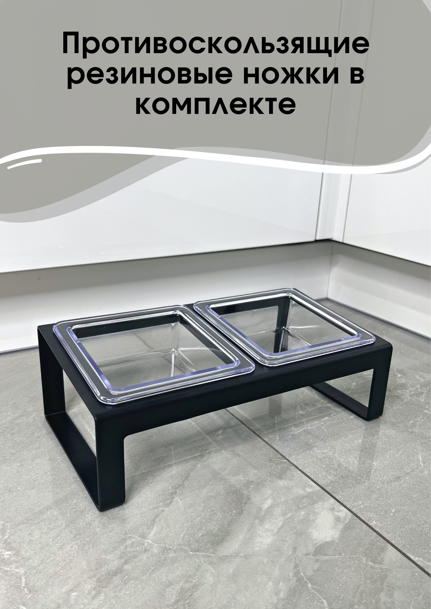 Миска для животных, кошек, собак двойная черная, сменные миски в комплекте