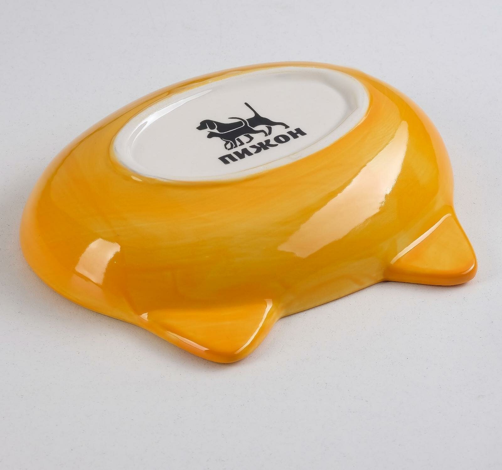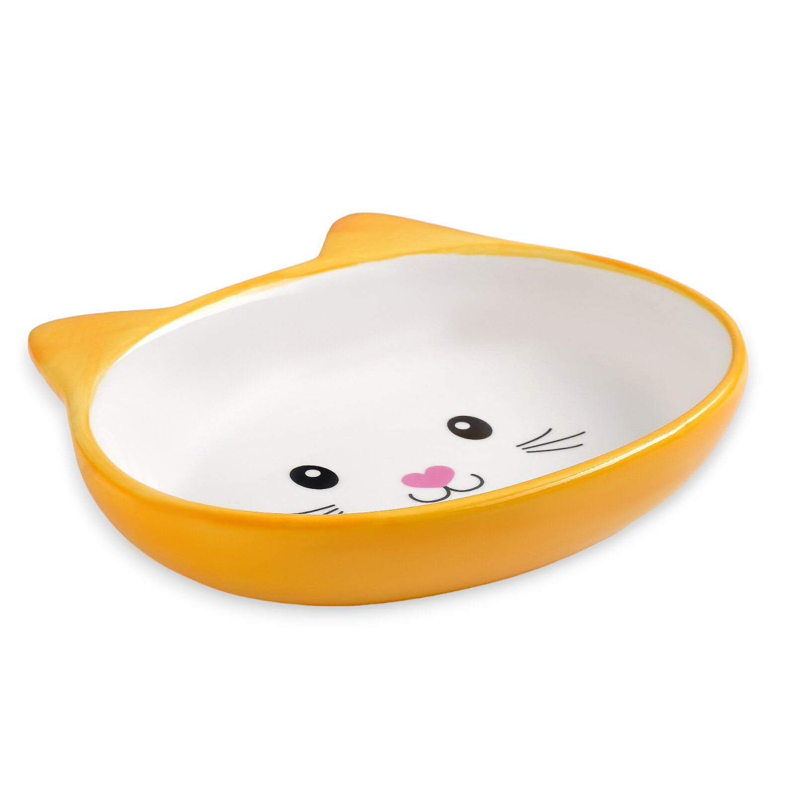 Купить Миска керамическая овальная "Кошачья мордочка" 200 мл, жёлто-оранжевая 2324215