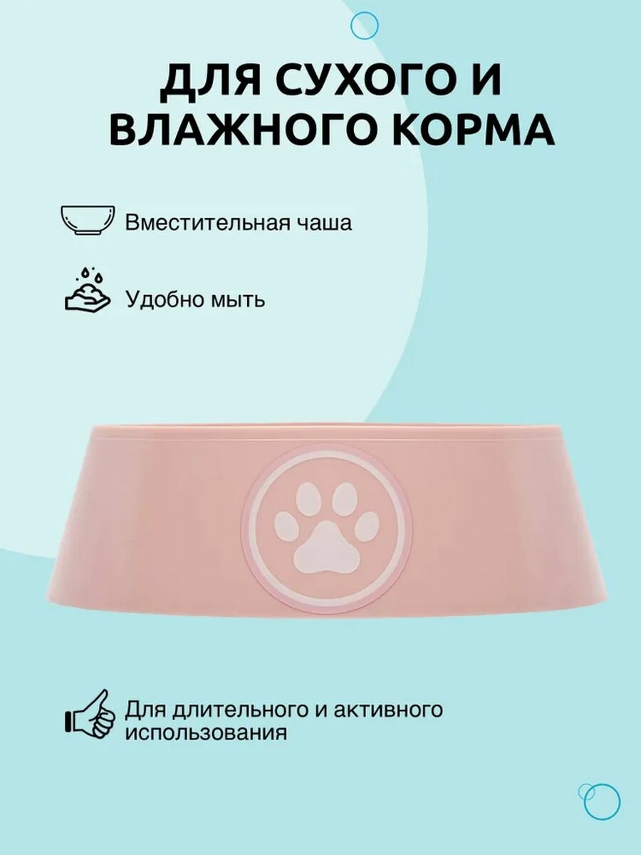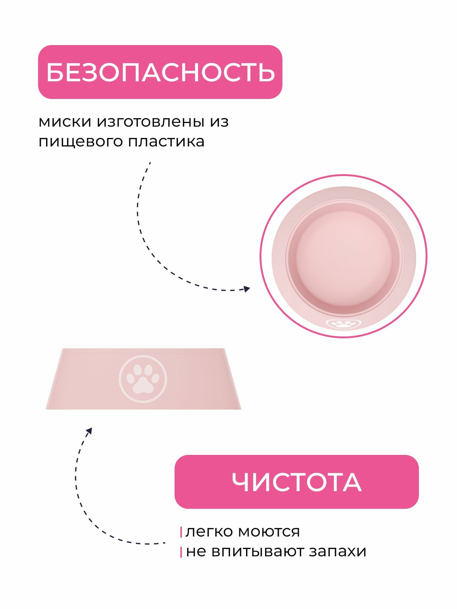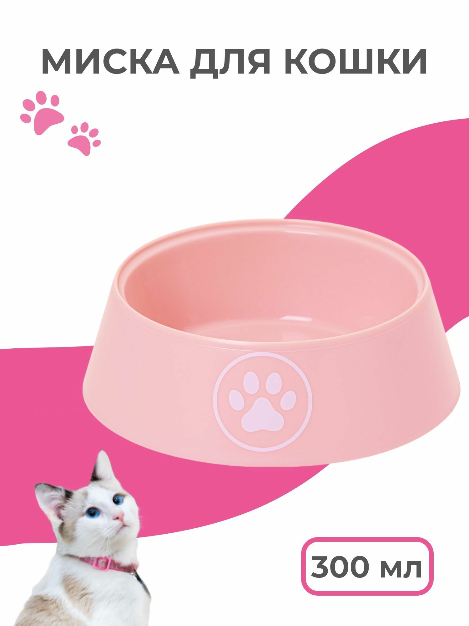 Миска пластиковая для животных, собак мелких пород и кошек, тарелка кошачья для воды, еды и корма Альтернатива Лекси 300 мл, розовый