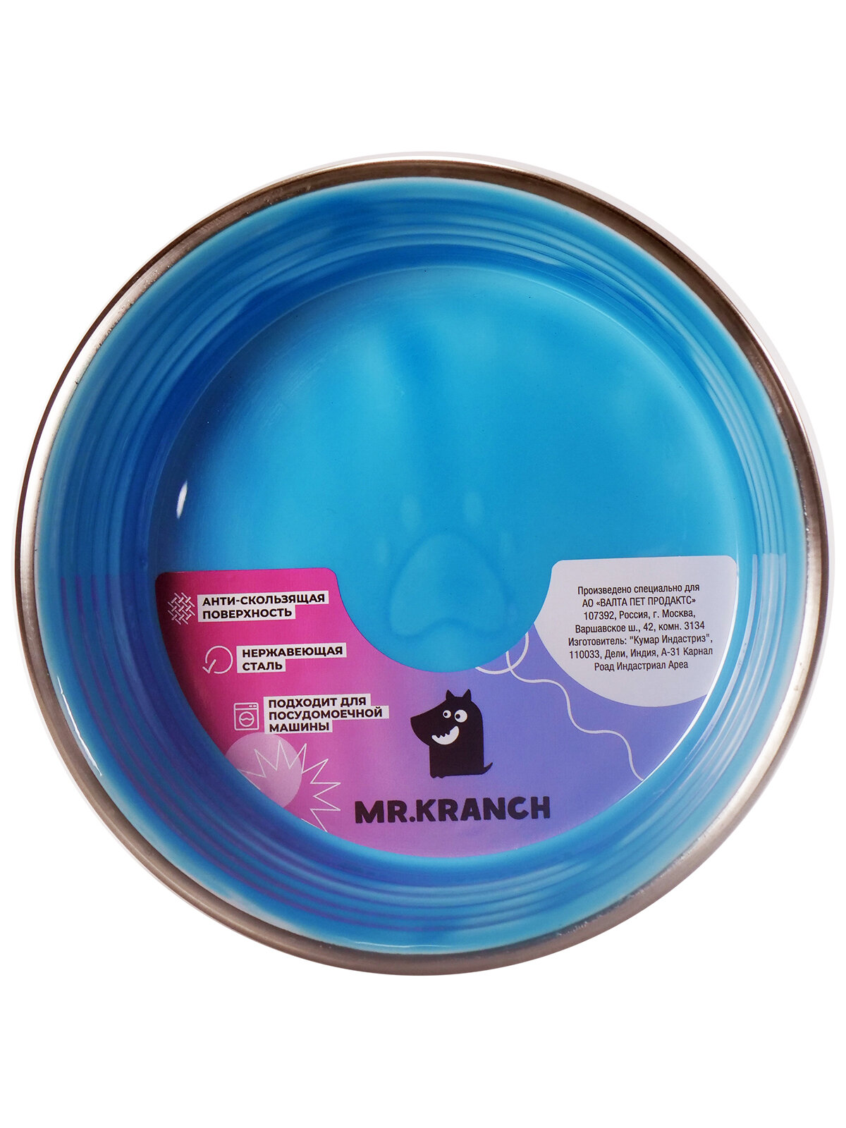 Купить С Керамическим покрытием Нескользящее основание нержавеющая сталь Голубая 2,7 л миска мистер кранч для животных