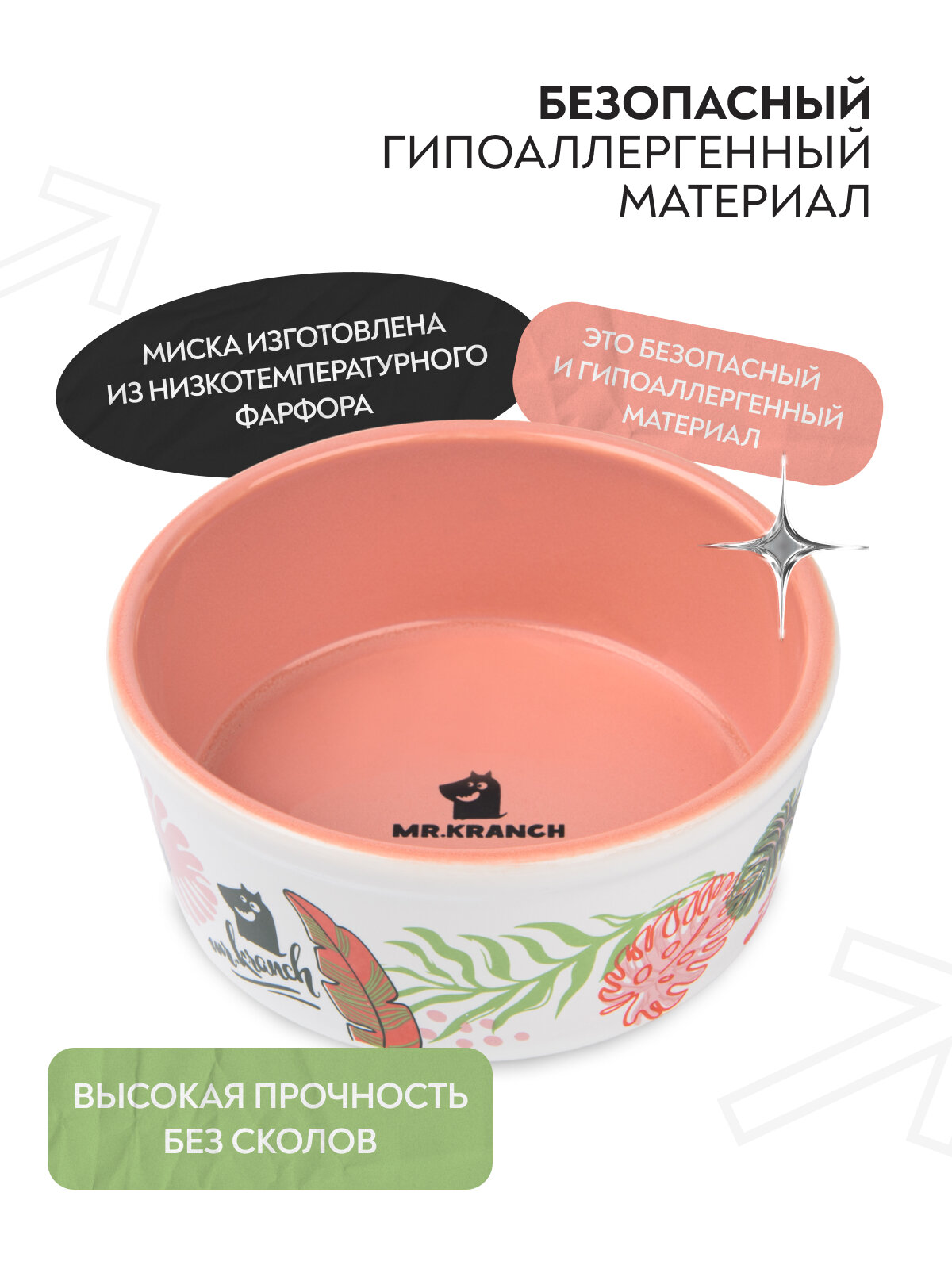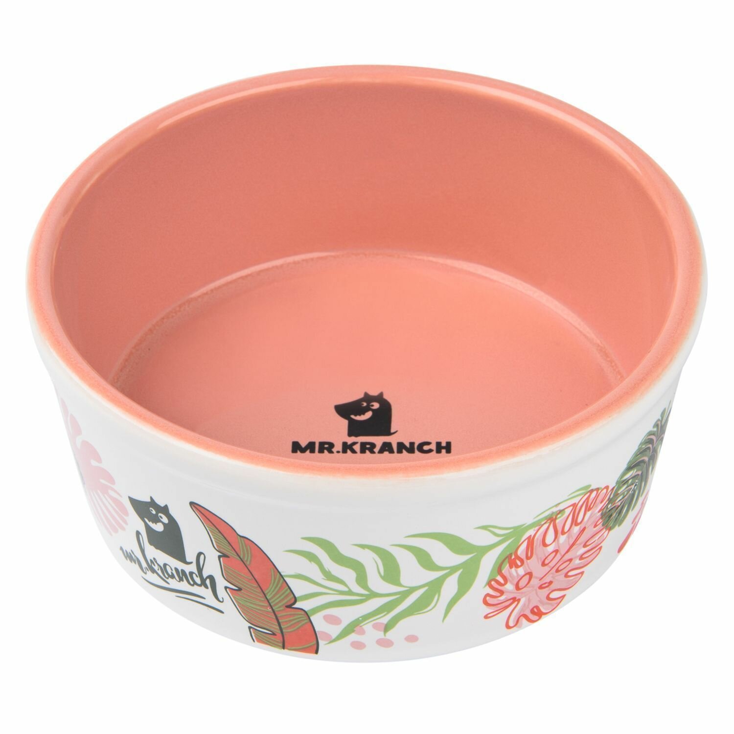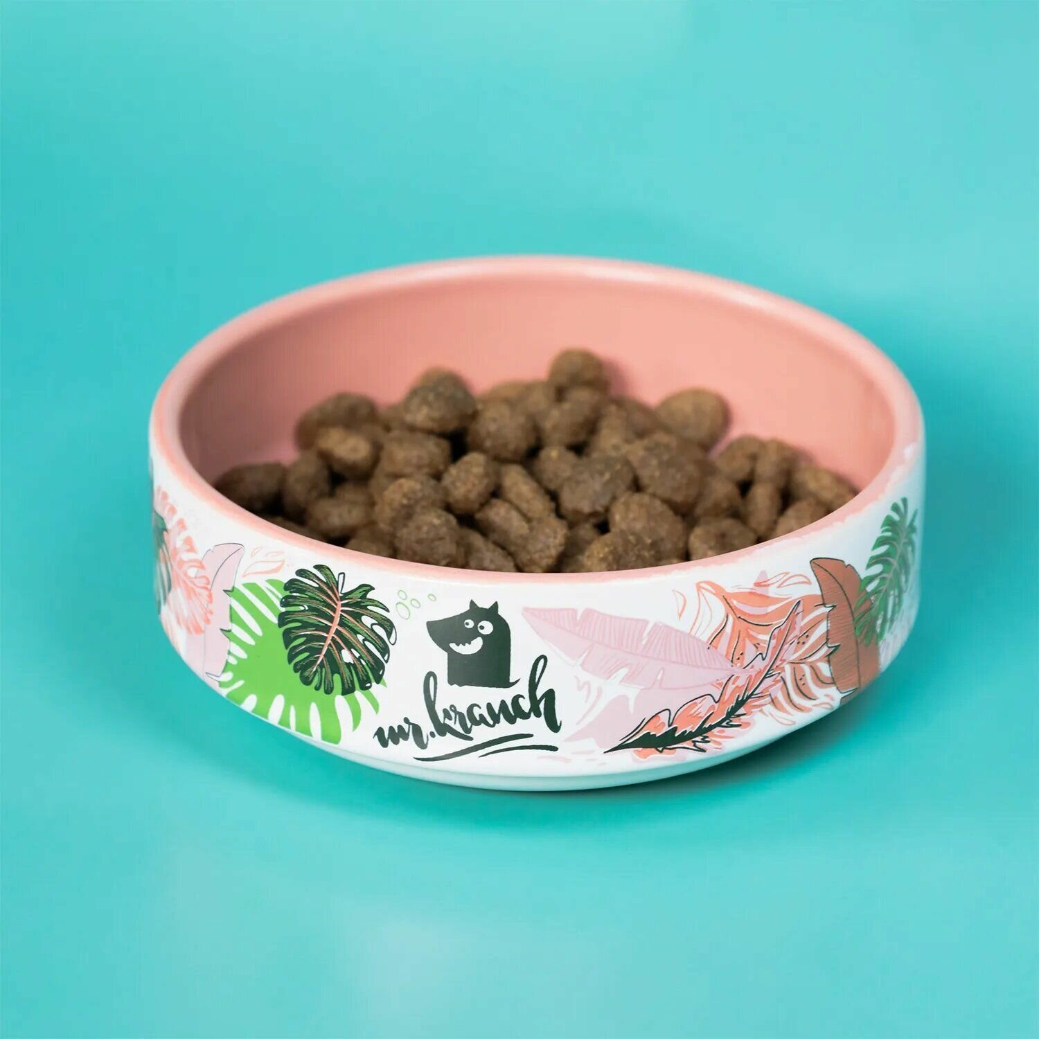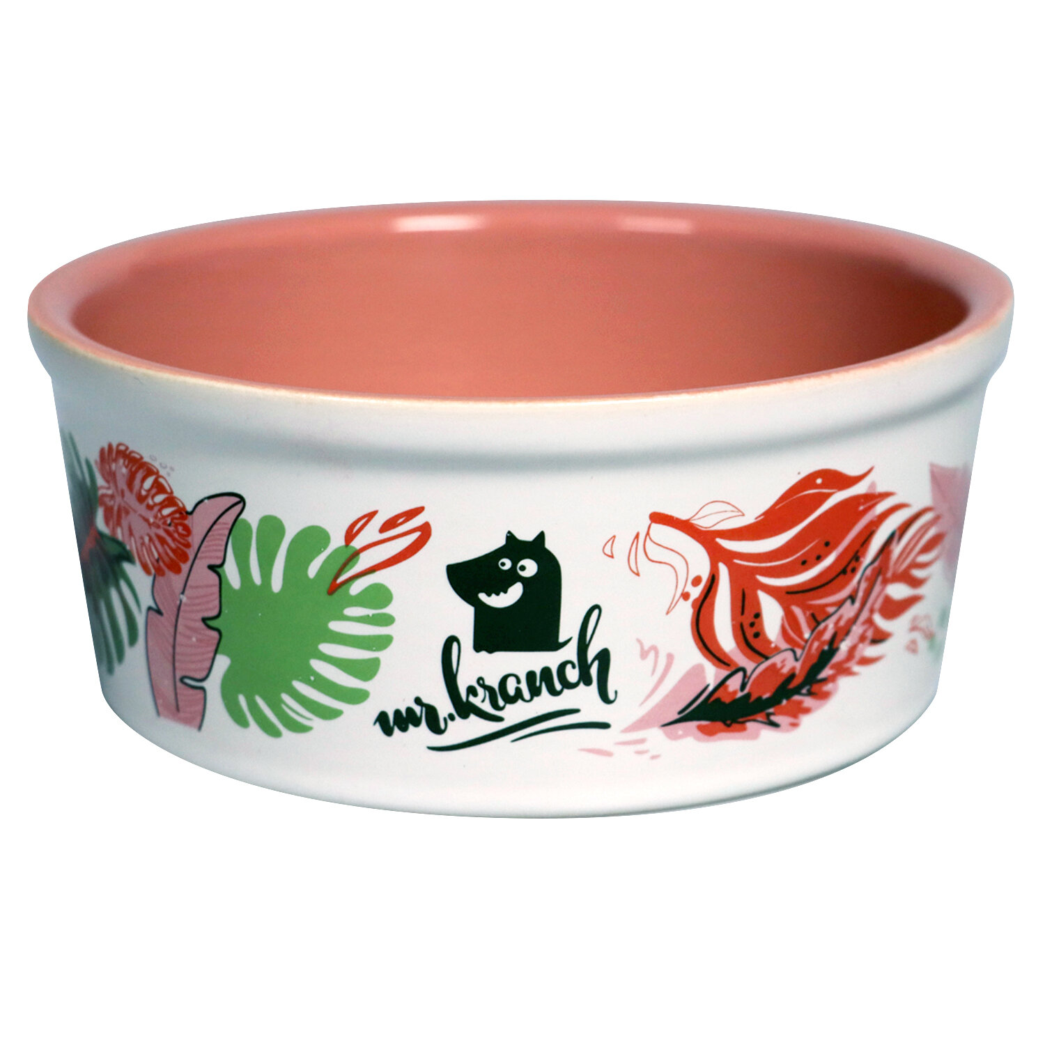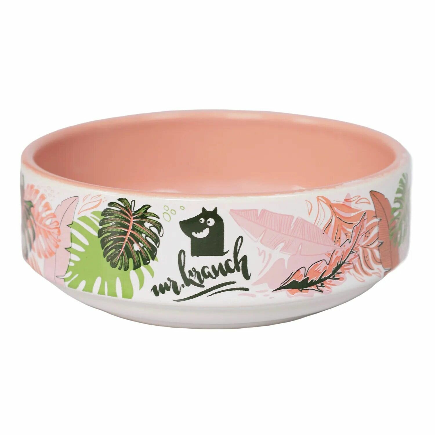Миска Mr.Kranch для собак и кошек из фарфора "Тропики", 350мл, розовая VLT-MKR080111
