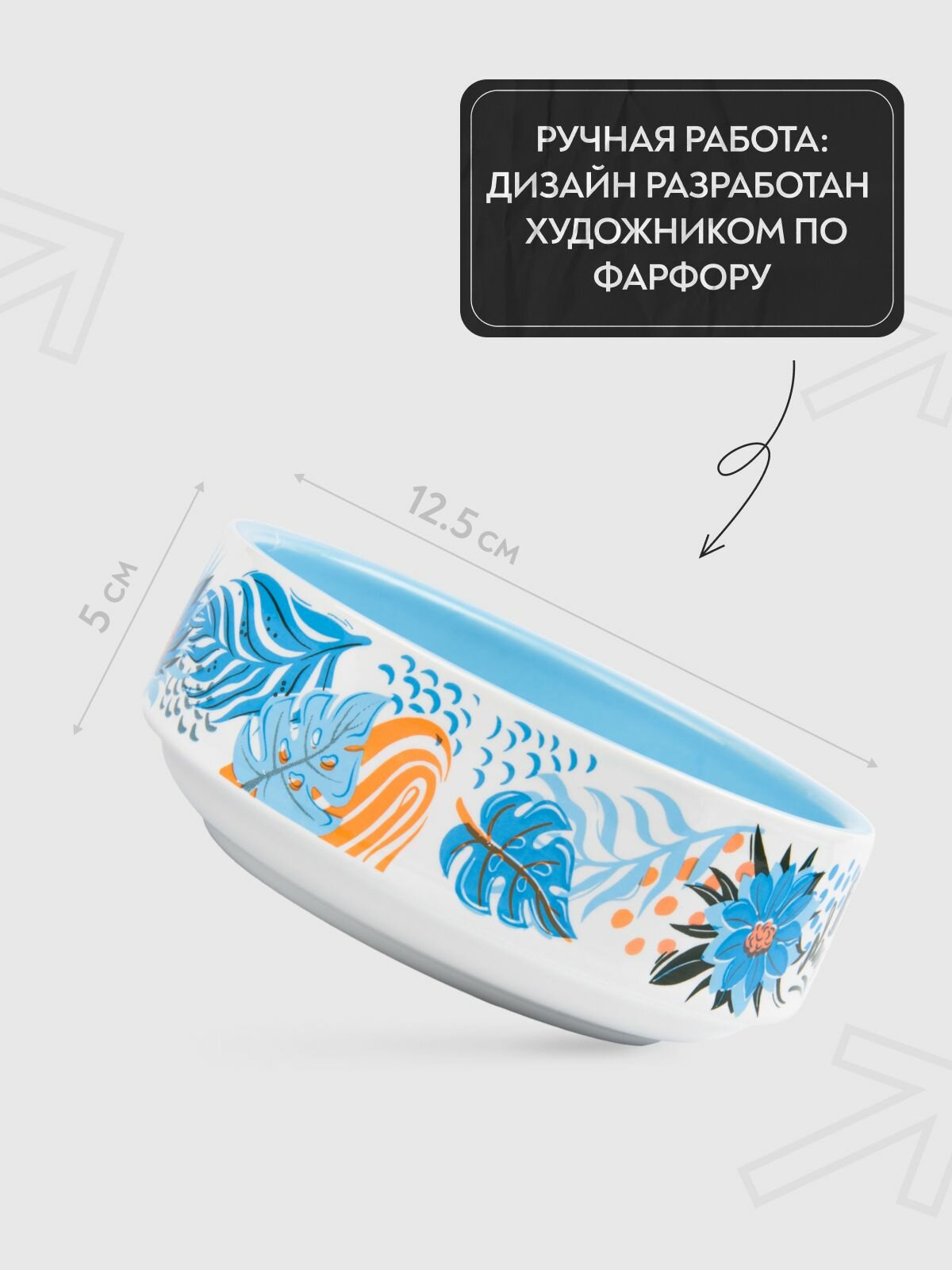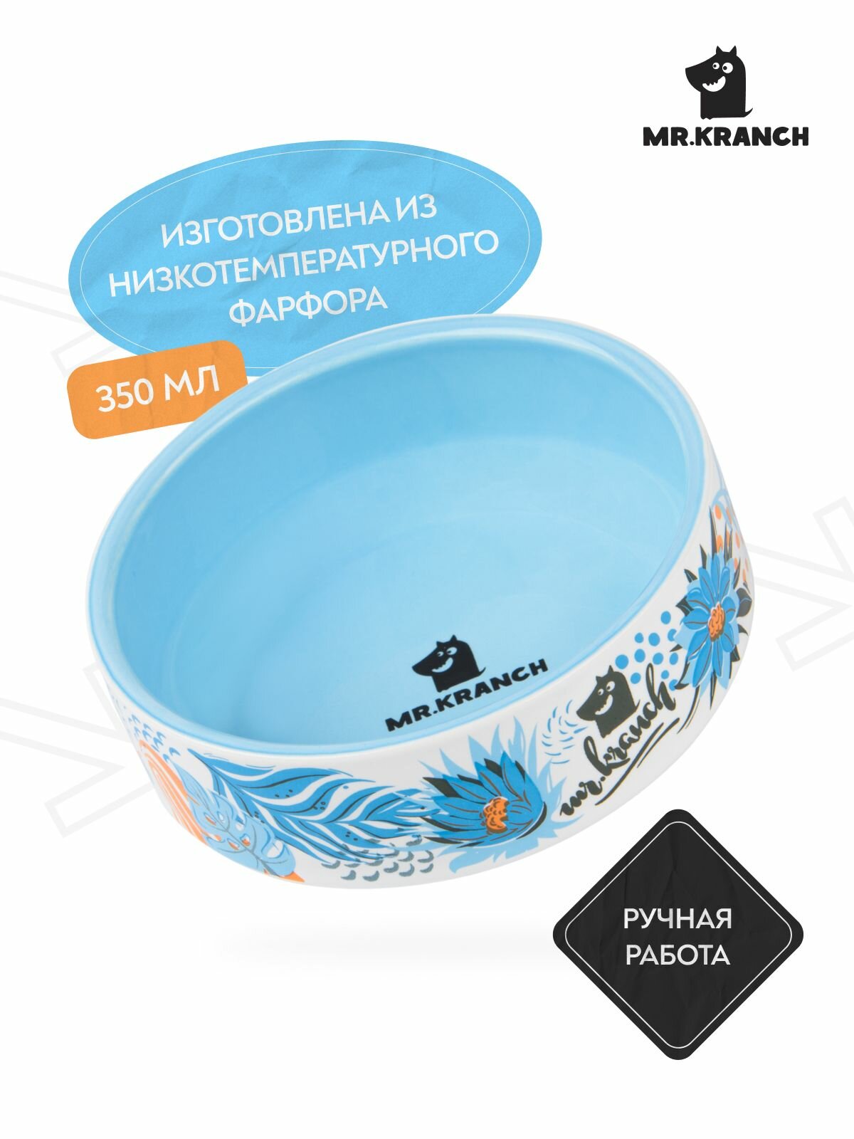 Купить Миска фарфоровая Мистер Кранч для собак и кошек Тропики Голубая 350 мл