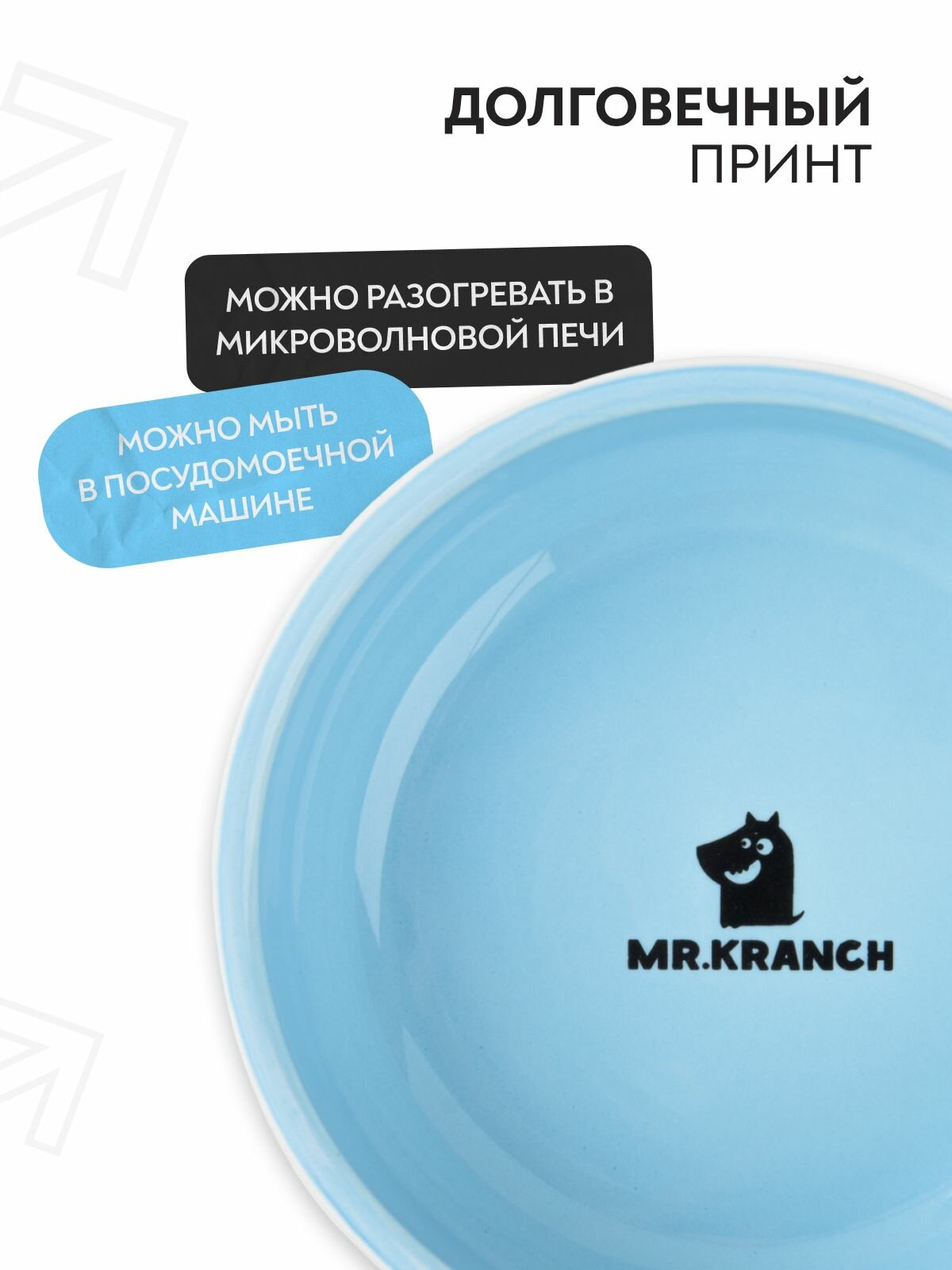 Миска для кошки керамическая Mr.Kranch "Мяу" 380 мл синяя