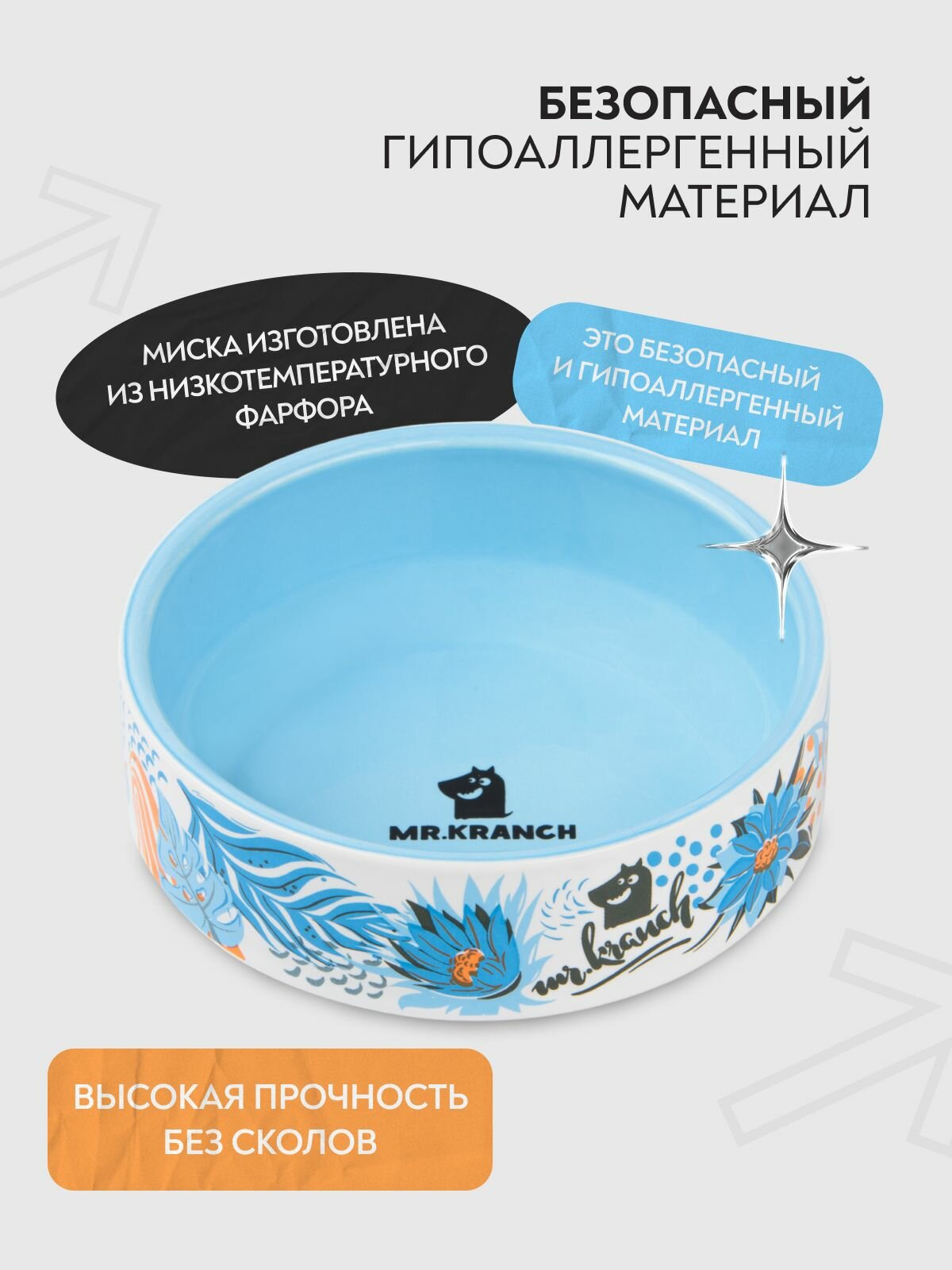 СохранитьМиска фарфоровая Мистер Кранч для собак и кошек Тропики Голубая 350 мл интересное: