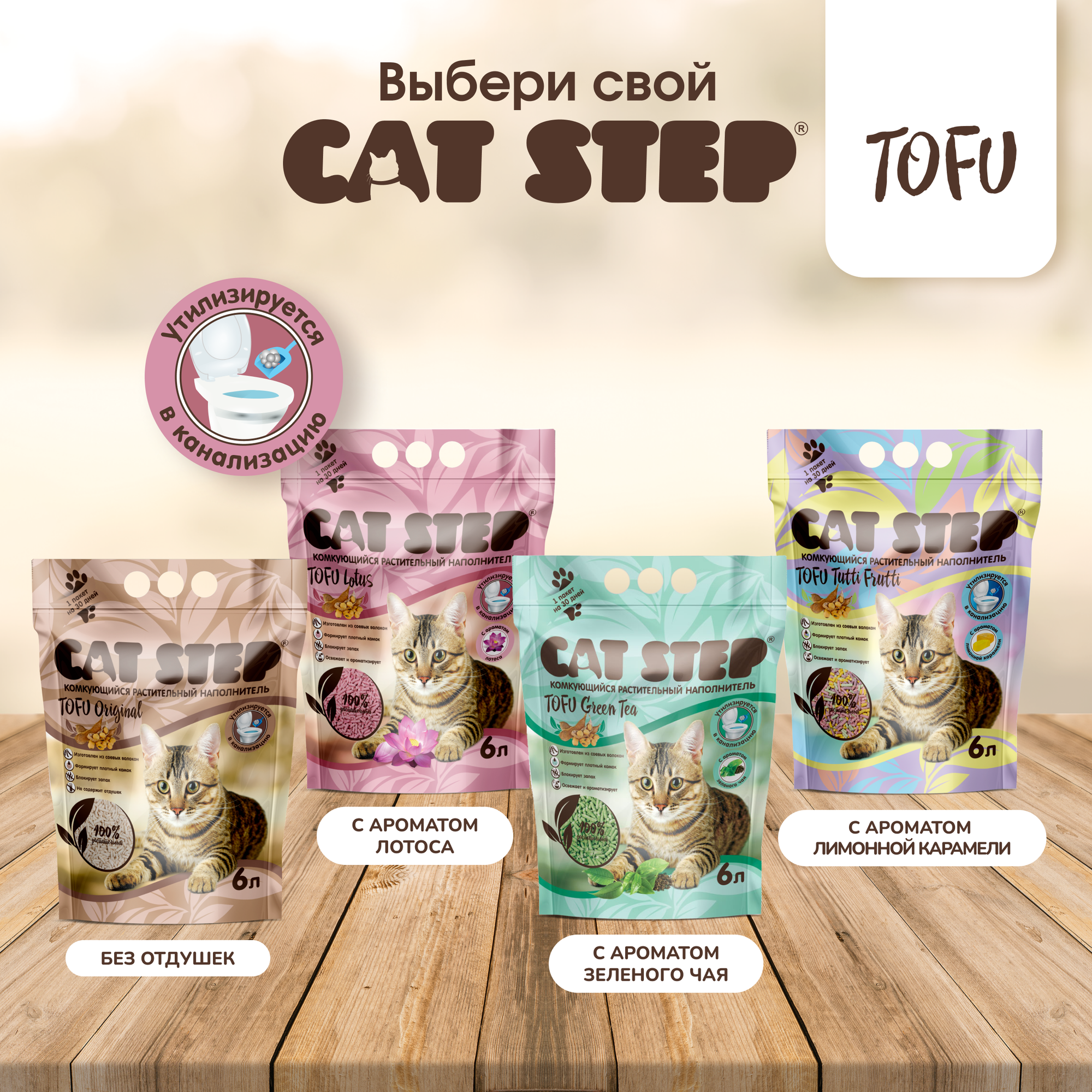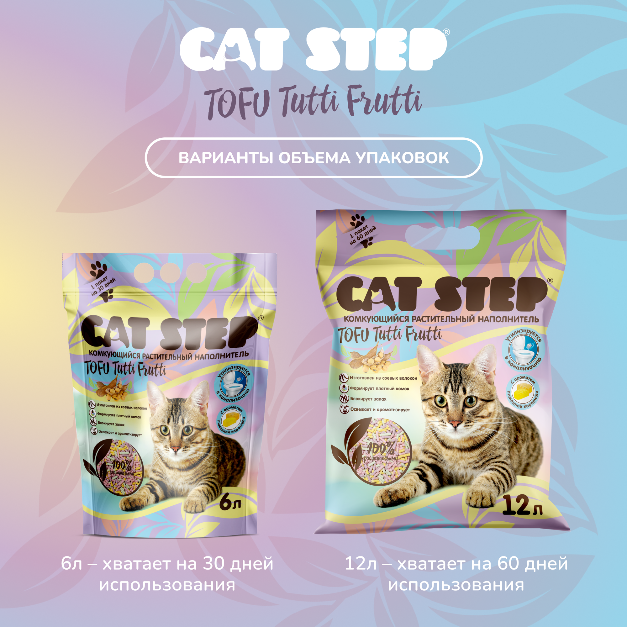 CAT STEP TOFU TUTTI FRUTTI наполнитель комкующийся растительный для туалета кошек (6 л)