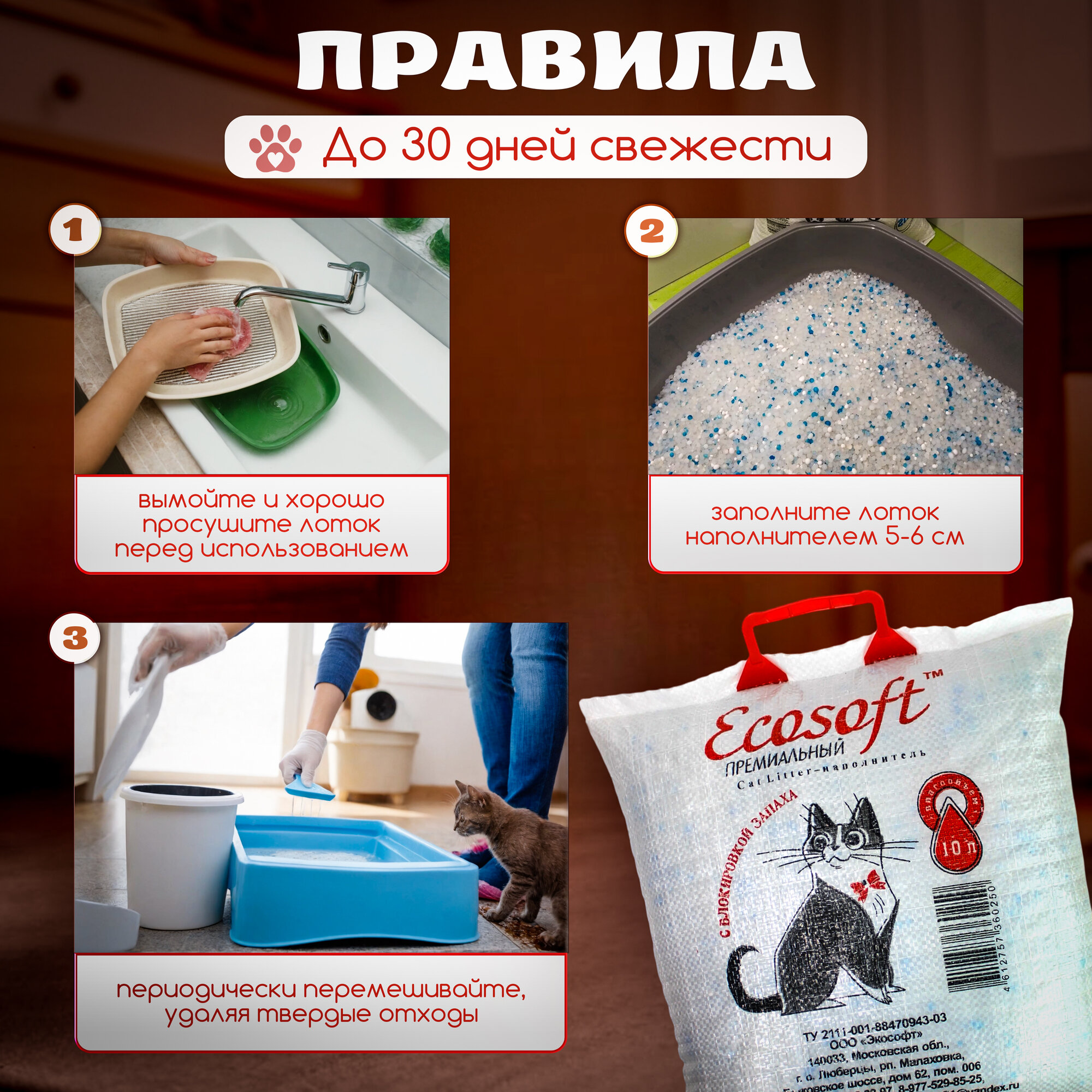 Наполнитель силикагелевый для кошек Экософт Премиальный, 10л. интересное: