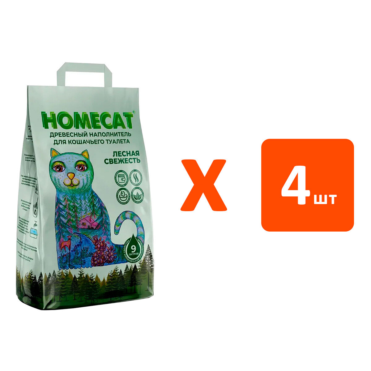 Купить HOMECAT лесная свежесть наполнитель древесный для туалета кошек (9 л х 4 шт)