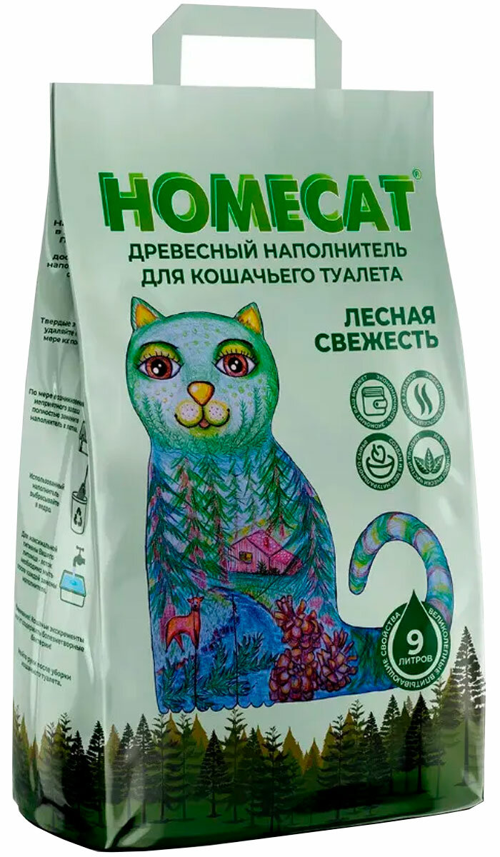 HOMECAT лесная свежесть наполнитель древесный для туалета кошек (9 л)
