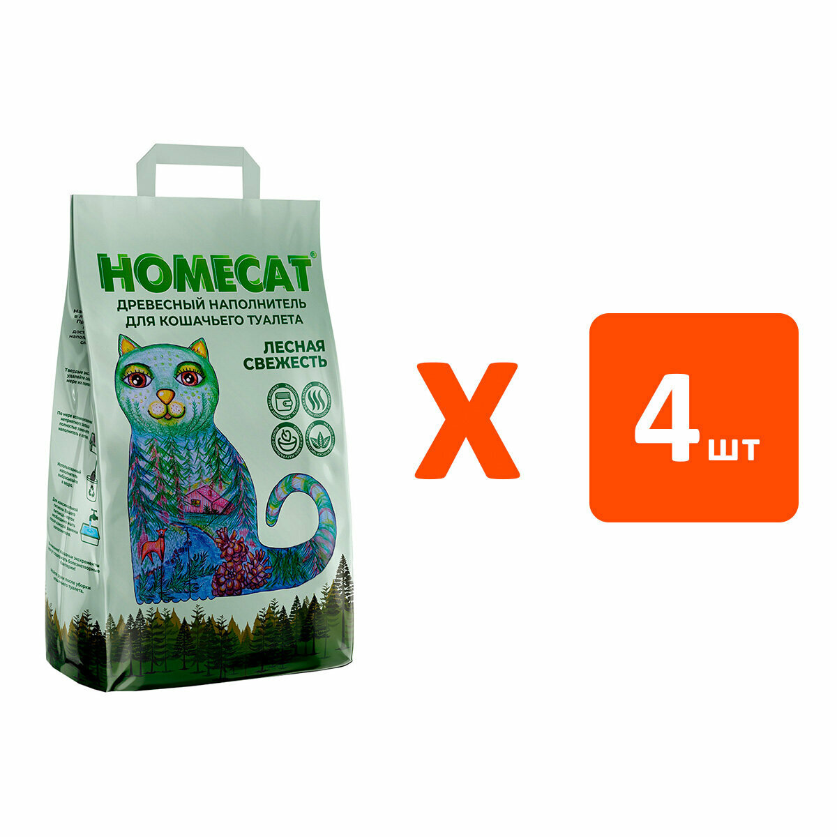 HOMECAT лесная свежесть наполнитель древесный для туалета кошек (9 л х 4 шт)