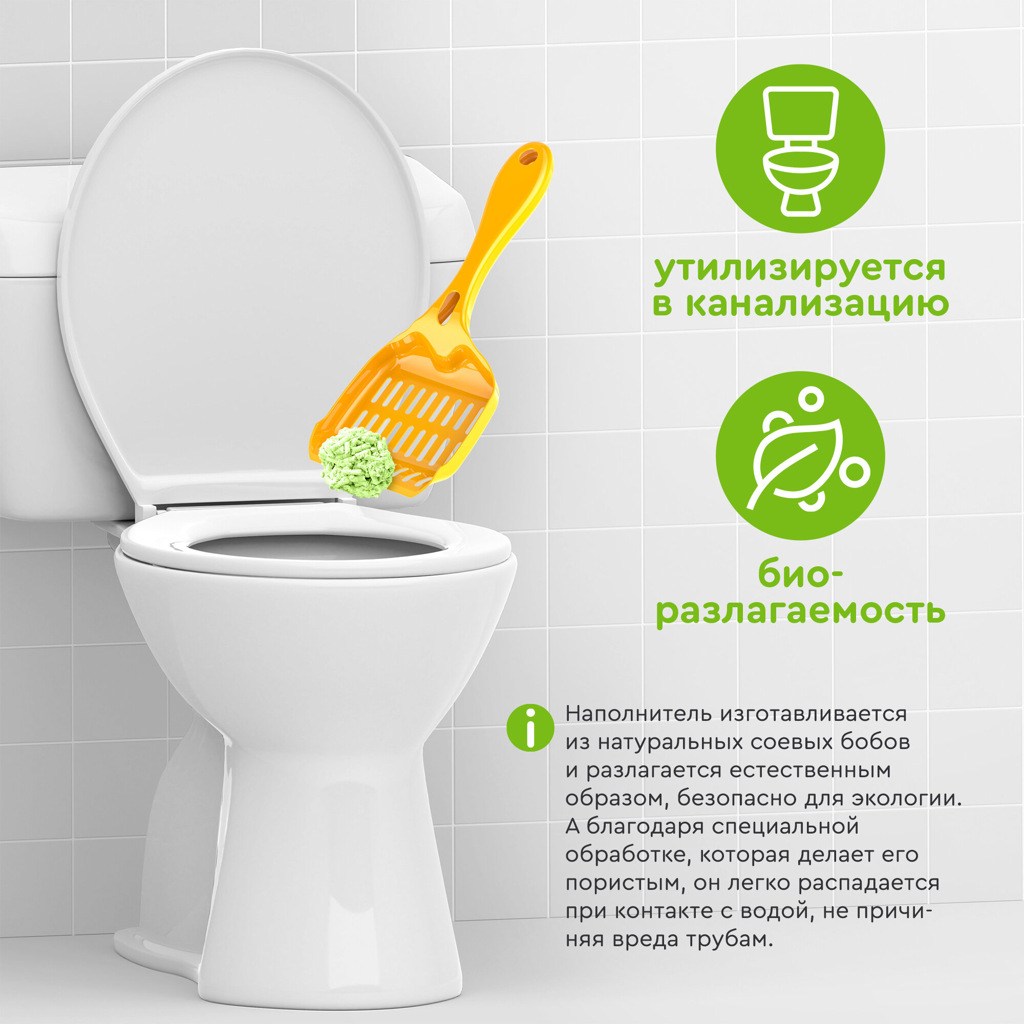 Наполнитель для кошачьего туалета, TOOCATTISH, Оригинал, 20 кг, 48 л, тофу, комкующийся, соевый, смываемый