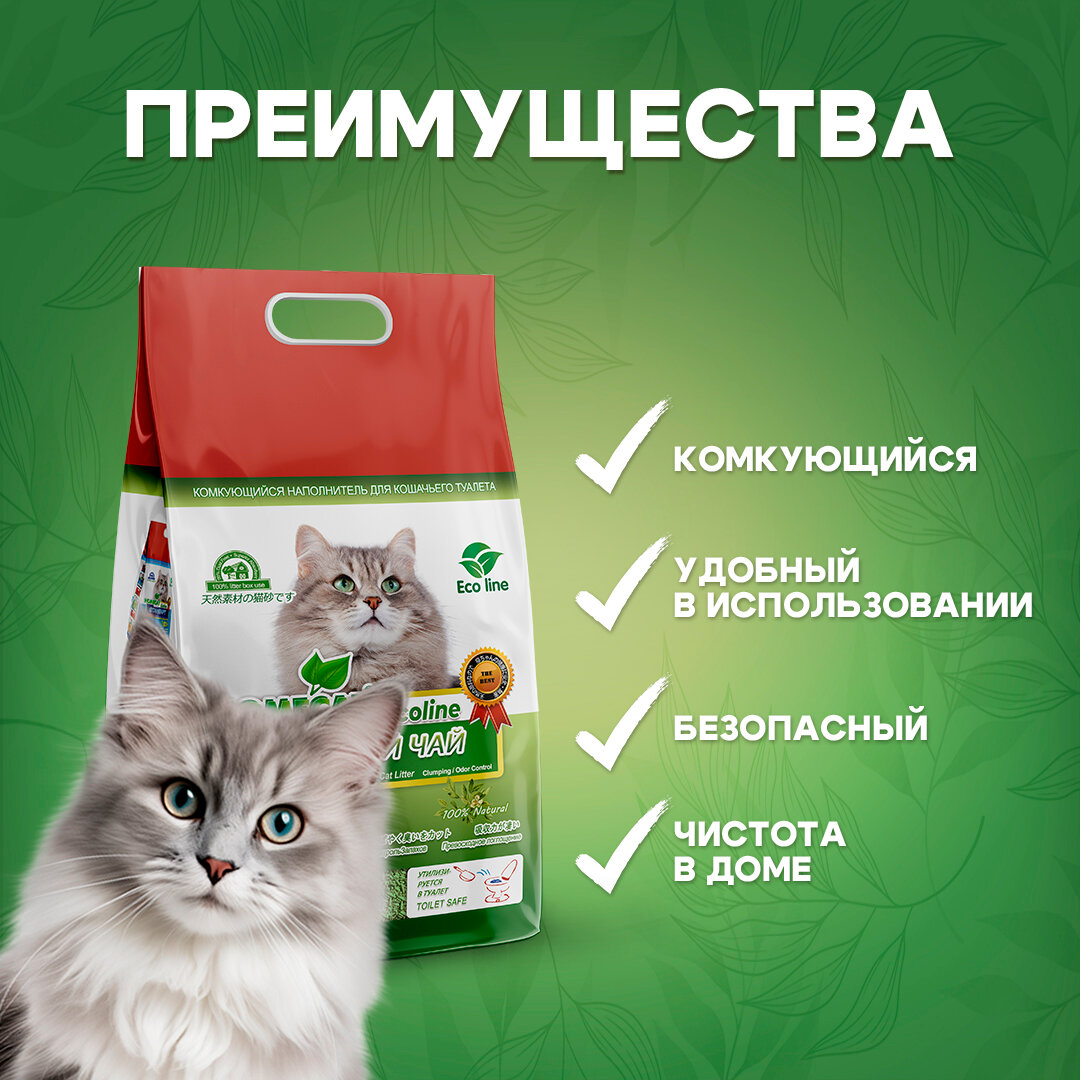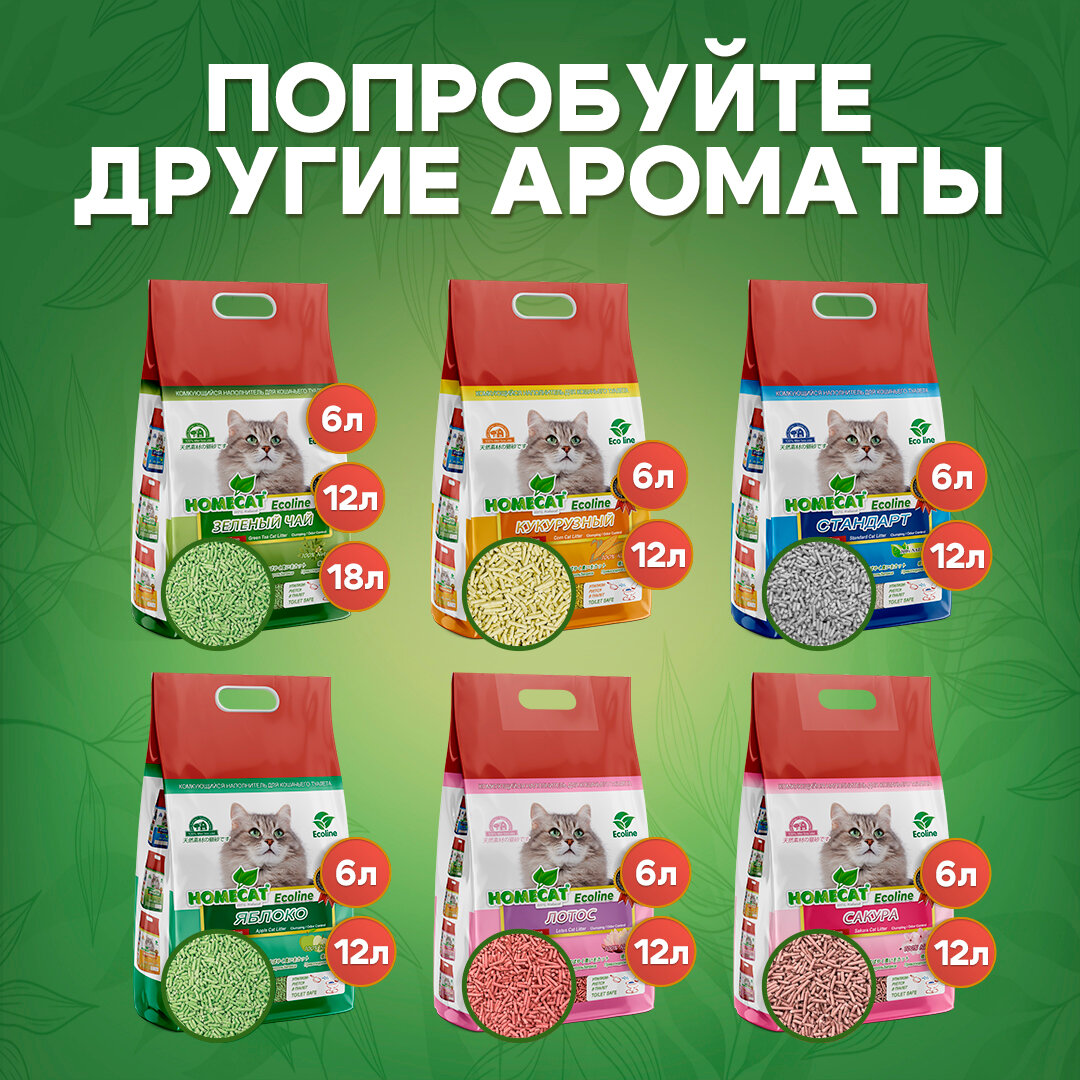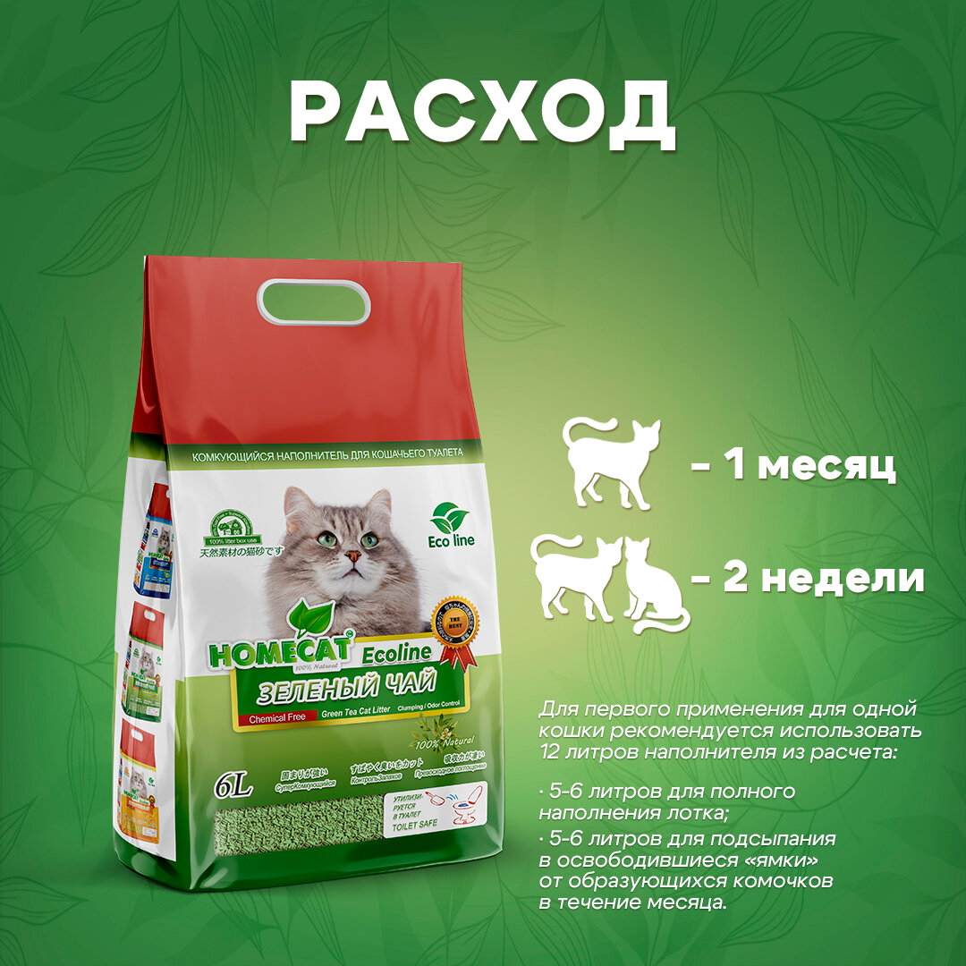 Комкующийся наполнитель тофу HOMECAT "Эколайн" Зеленый чай 6 л интересное:
