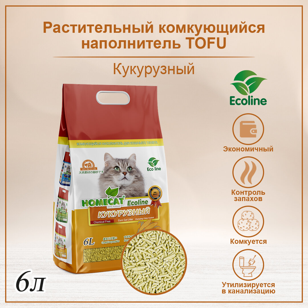 Комкующийся наполнитель тофу HOMECAT "Эколайн" Кукурузный 6 л интересное: