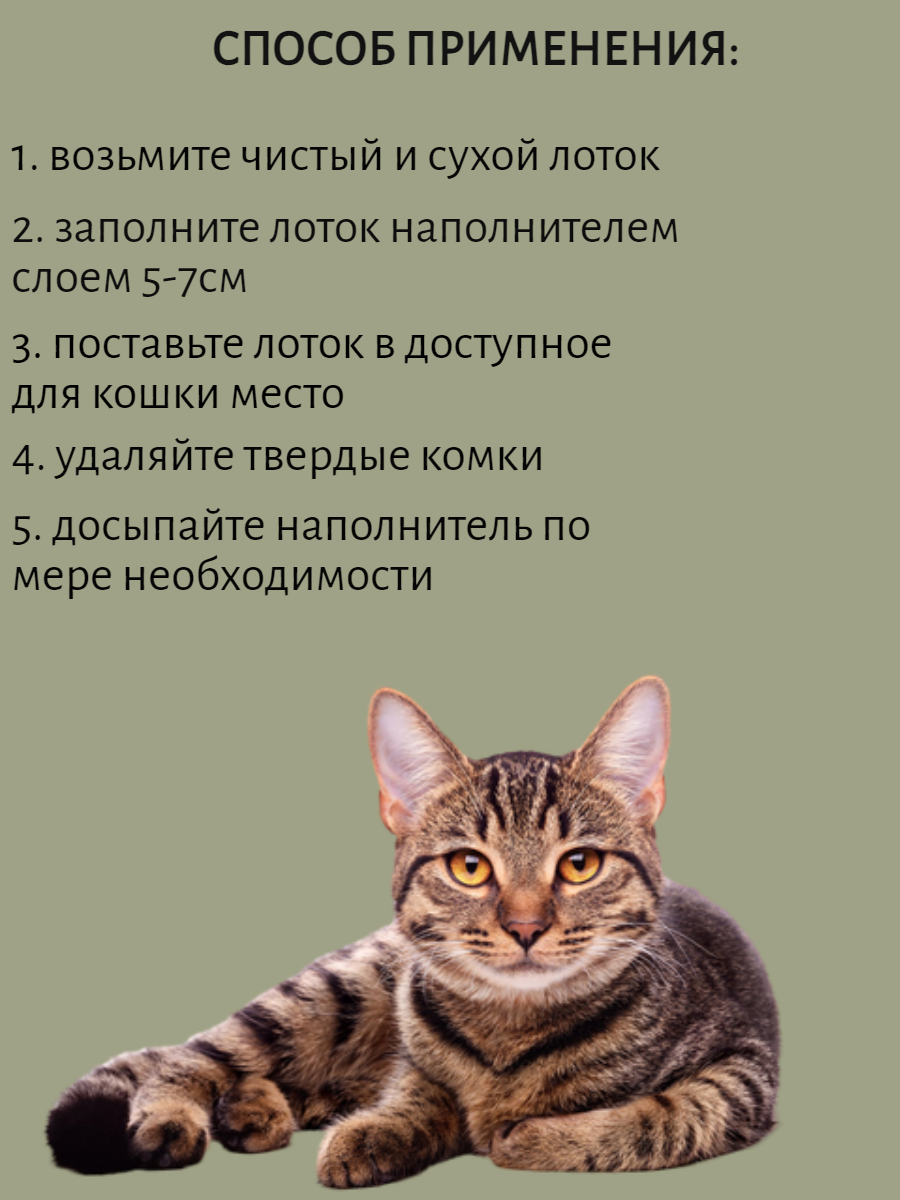 | Особенности | антибактериальный / ароматизированный / биоразлагаемый / гипоаллергенный / гранулированный / контроль запаха / с защитой от запаха / смываемый |