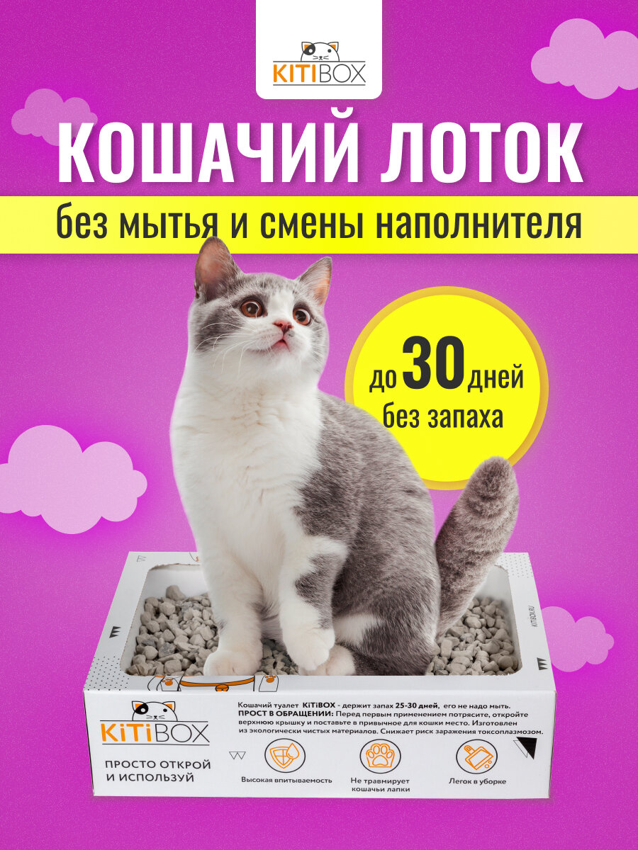 Купить Наполнитель и лоток 2-в-1KiTiBOX. Долгоиграющий одноразовый туалет для котов