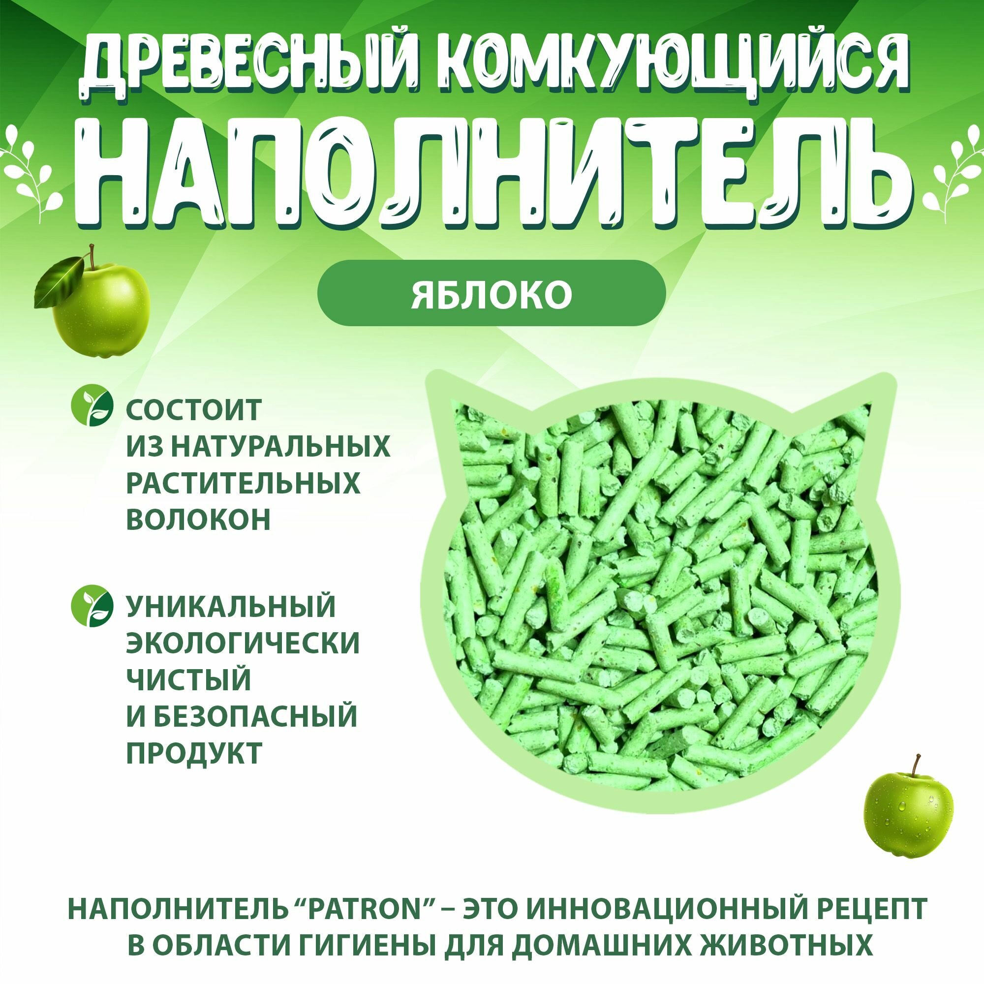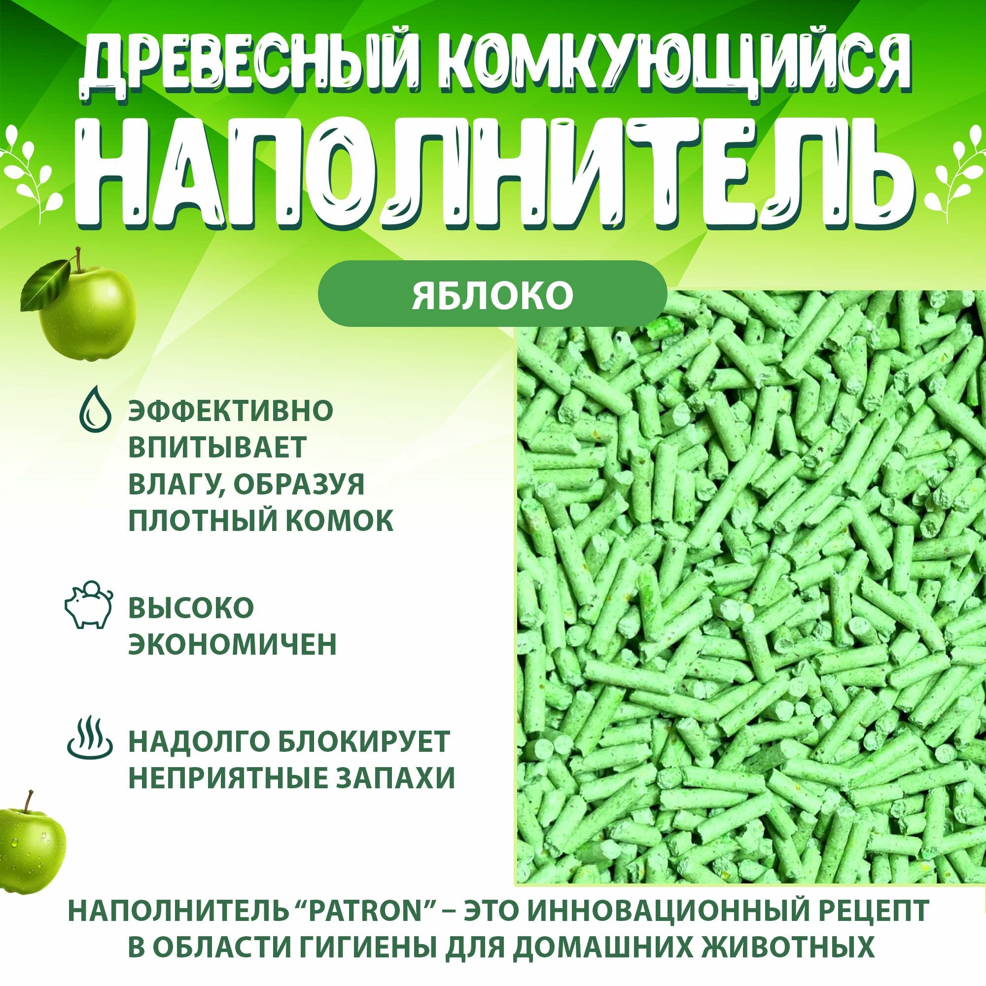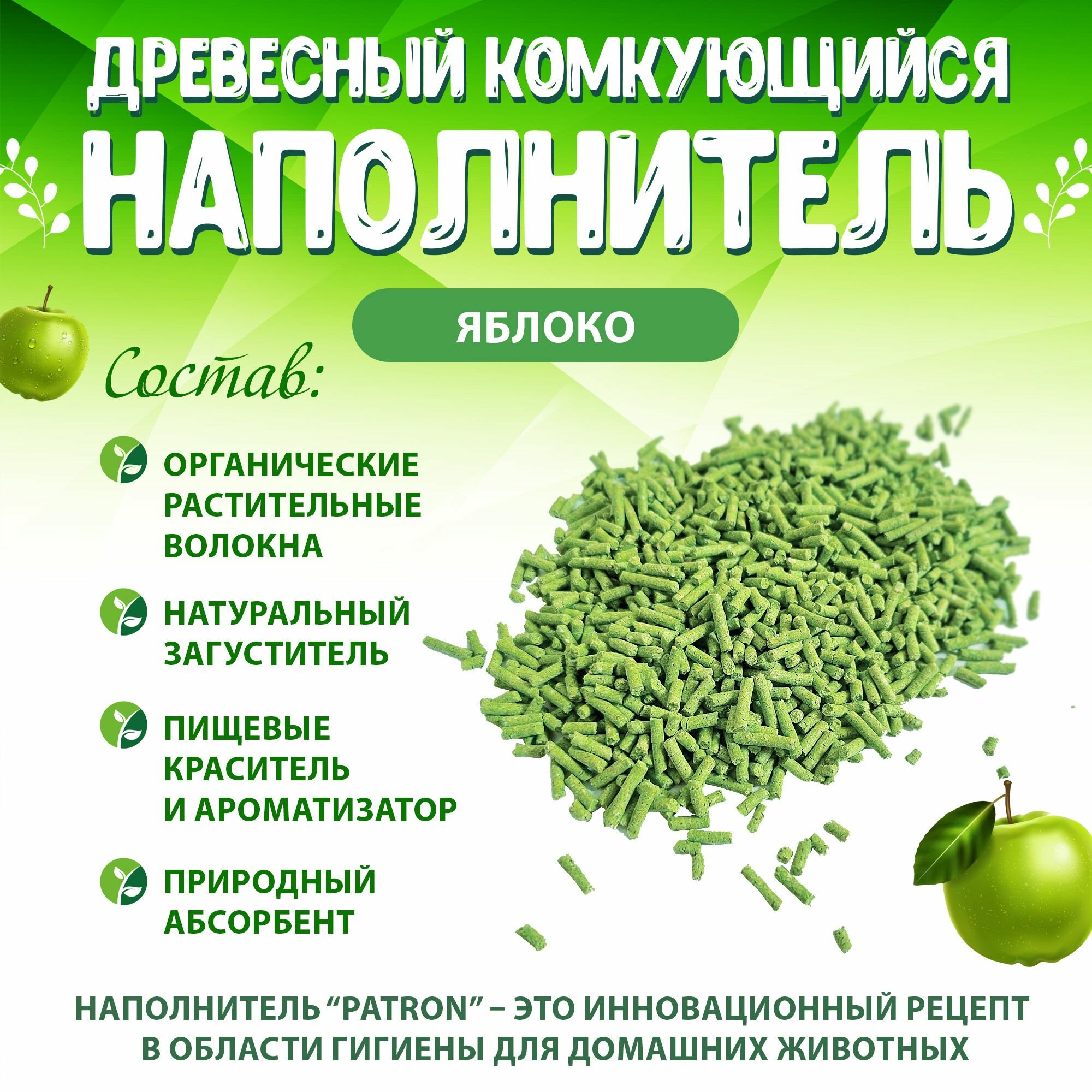 Купить Patron Наполнитель для кошачьего туалета древесный комкующийся, с ароматом Яблока, 5кг. - 14л.