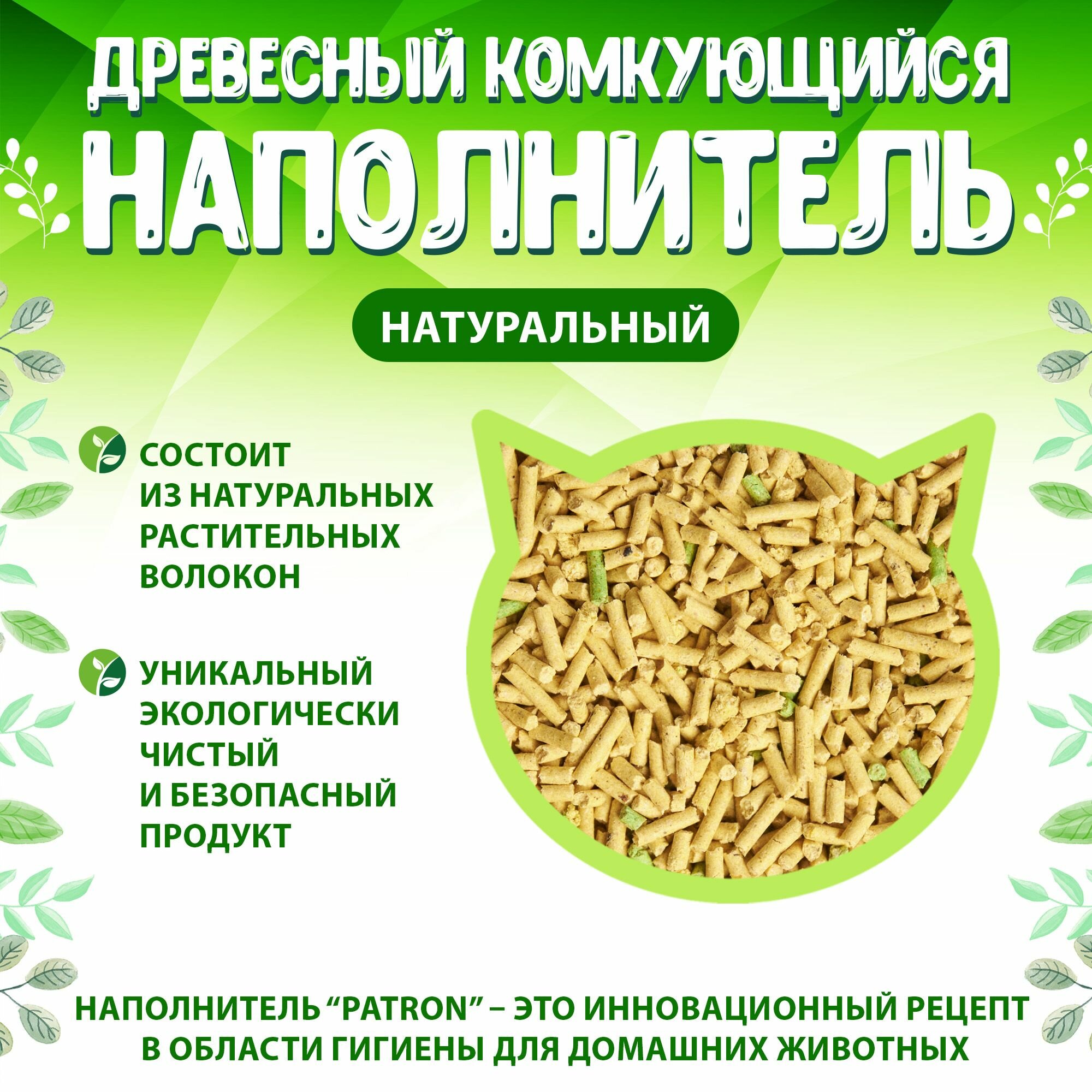 Patron Наполнитель для кошачьего туалета древесный комкующийся, Натуральный (без ароматизатора) 1,8 кг. - 5л.