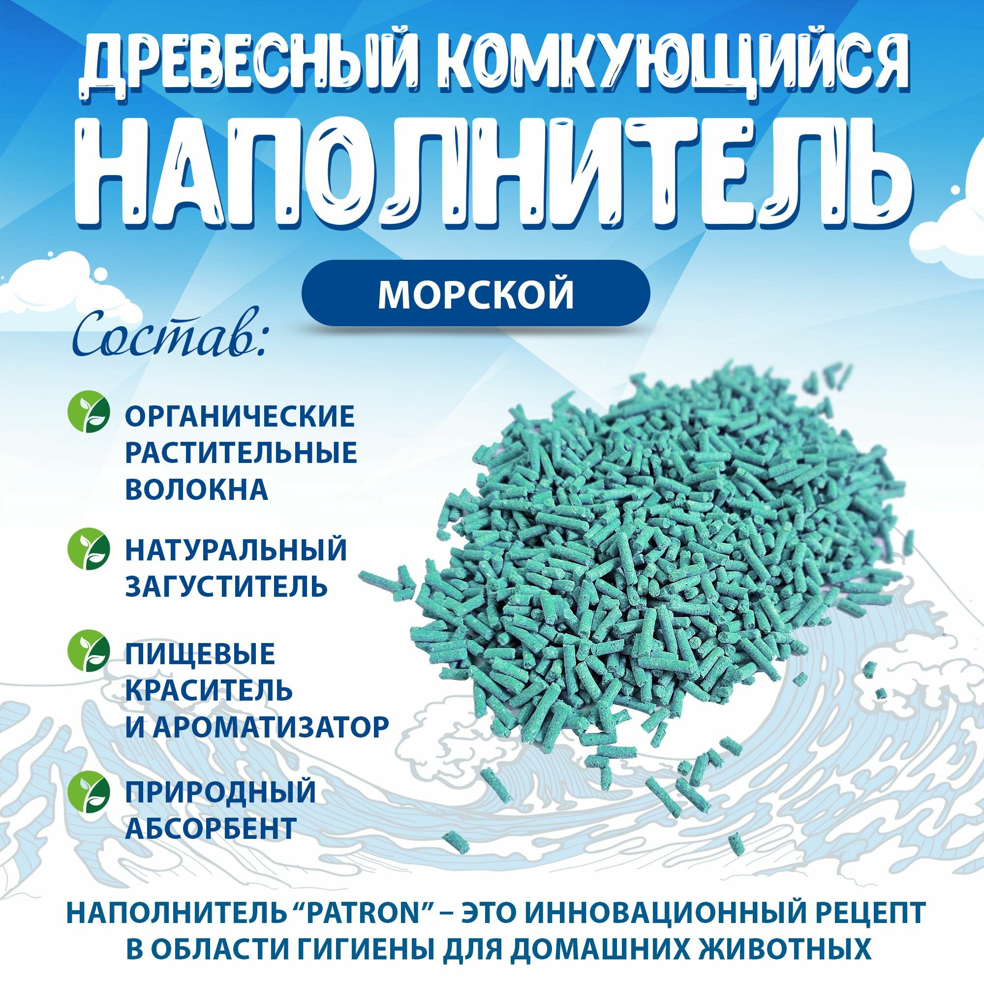 Купить Patron Наполнитель для кошачьего туалета древесный комкующийся, Морской, 5кг. - 14л.