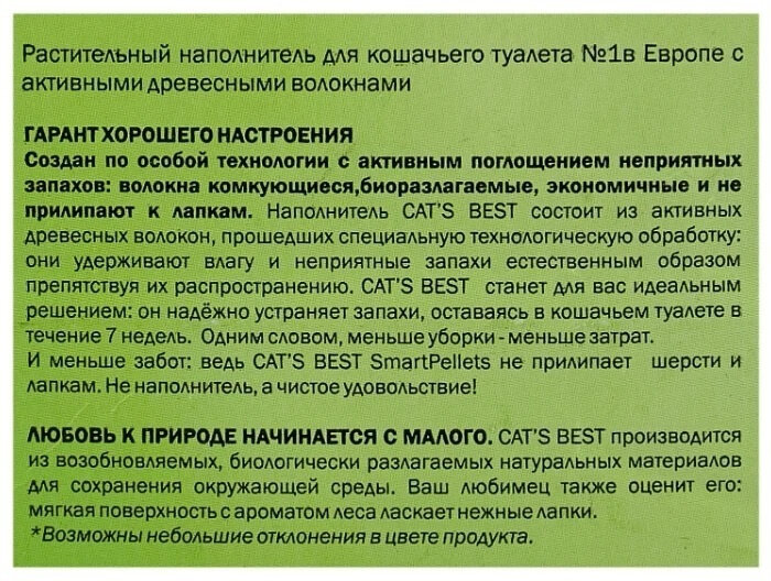 Cat's Best Smart Pellets комкующийся древесный наполнитель для длинношерстных кошек